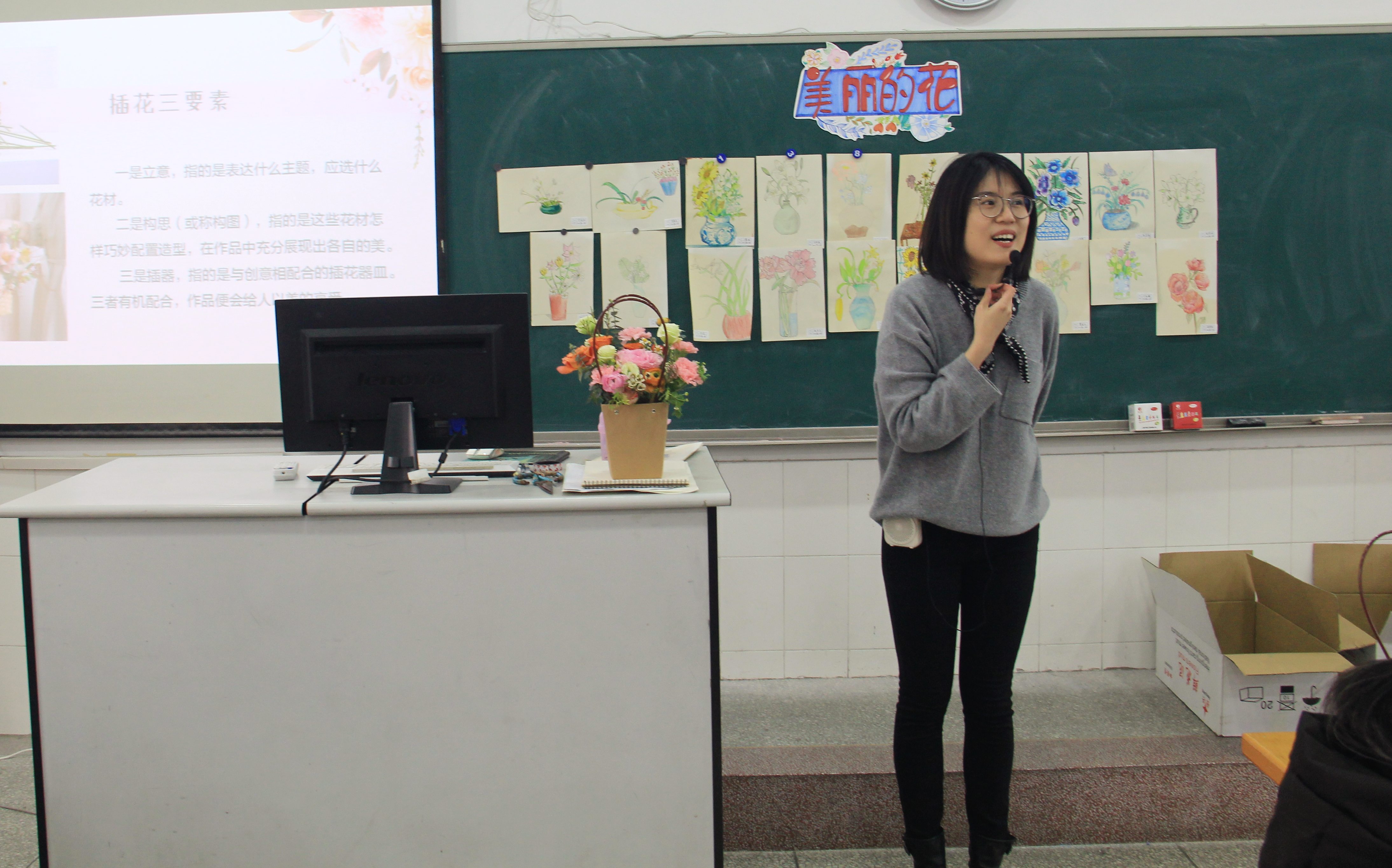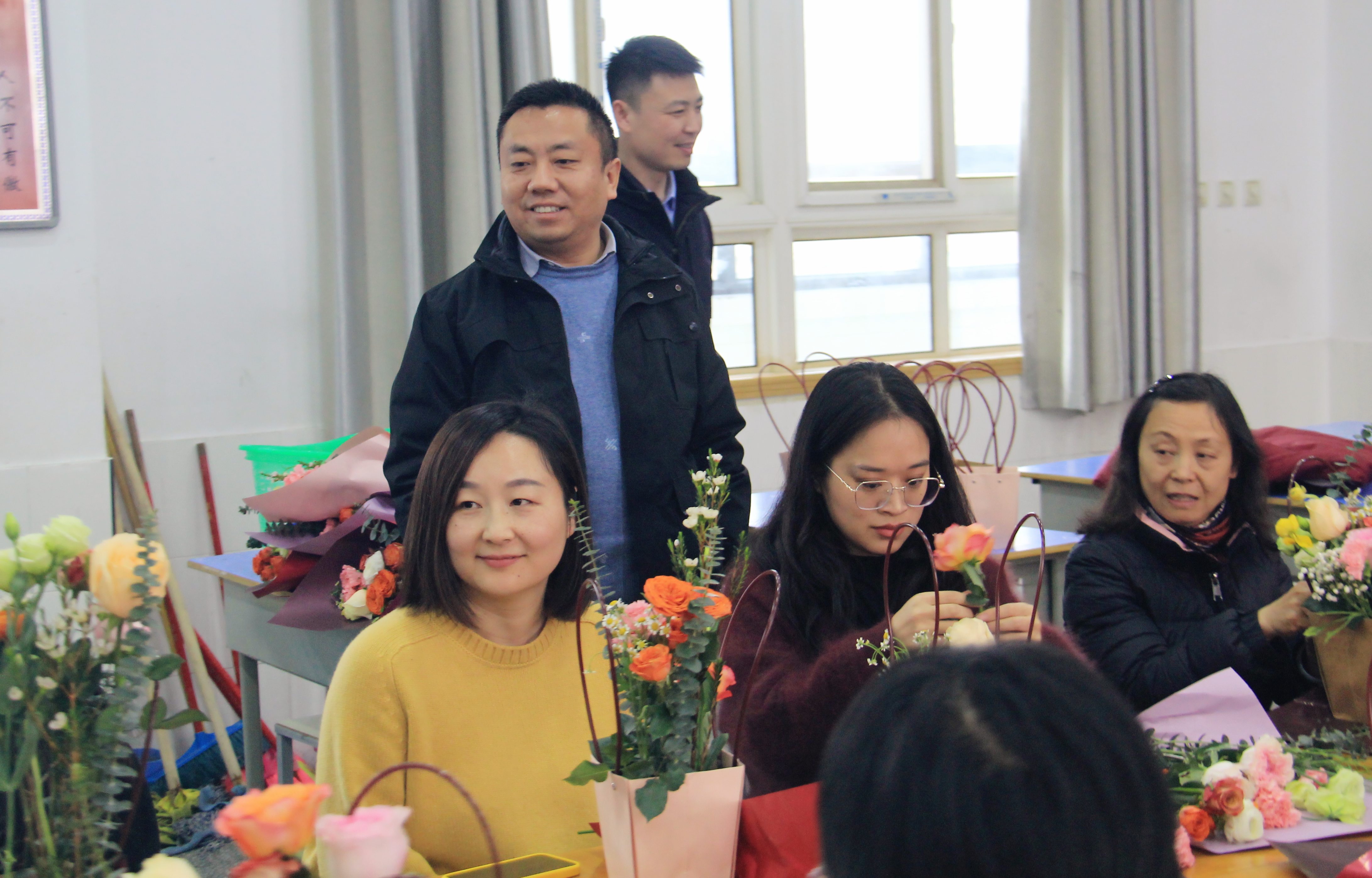 经过近一个小时的创作,一件件生机盎然的插花作品陆续完成。教师们纷纷举起花篮合影留念,并将作品带回装点办公室或赠予同事,传递节日的祝福。