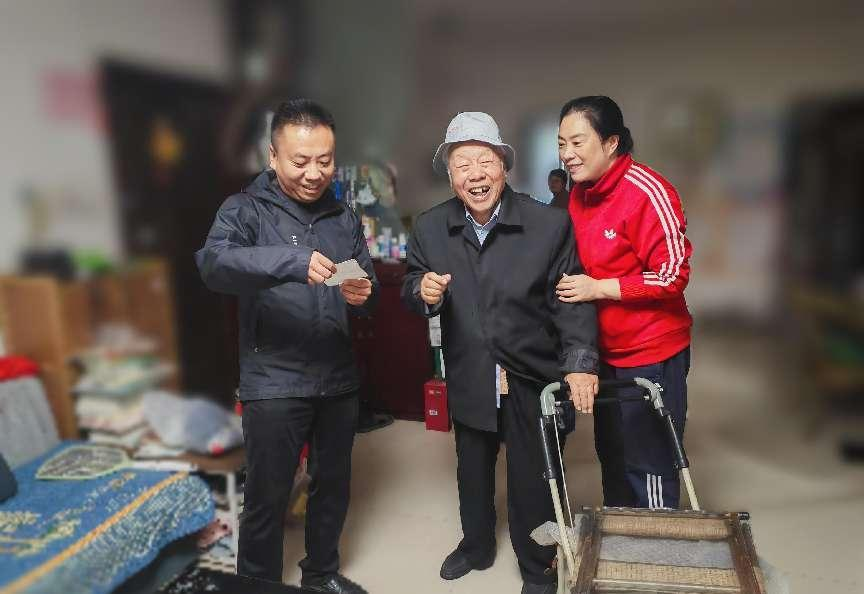 据了解,七初东校区的退休教师中有一位老书记王义民已经92岁高龄了,1985年他曾任学校党支部书记,在学校的发展中作出过突出的贡献。在收到本次茶话会的邀请函后,王书记表示非常想参加,可是腿脚已经不太利索,非常遗憾。七初东校区党支部书记楚东升在得知这个消息后,立马表示要登门拜访,在获得王义民书记的许可后,有了这次的登门拜访。王义民书记激动地赠诗一首,感谢校领导的问候。