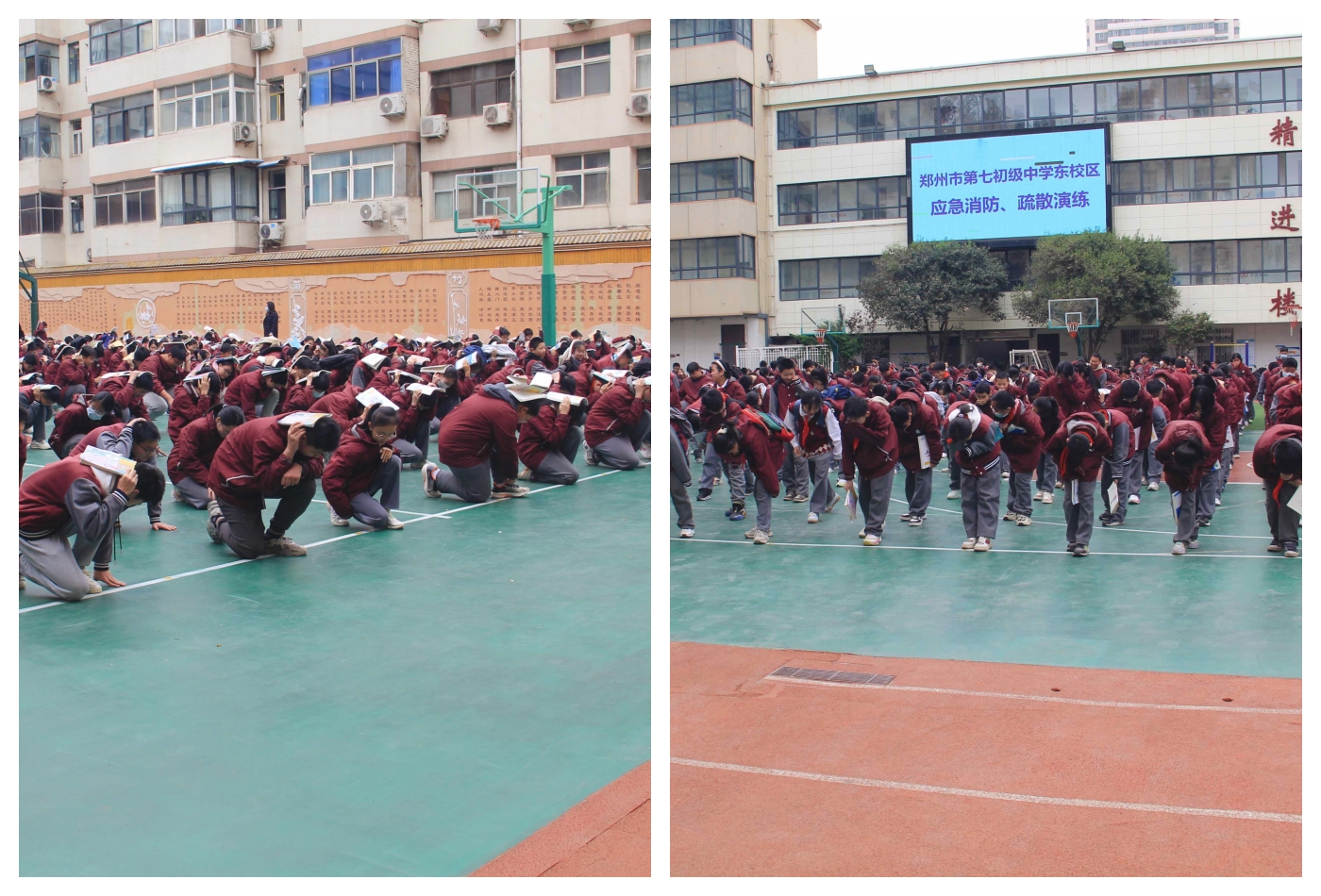 郑州七初东校区举行应急消防疏散演练