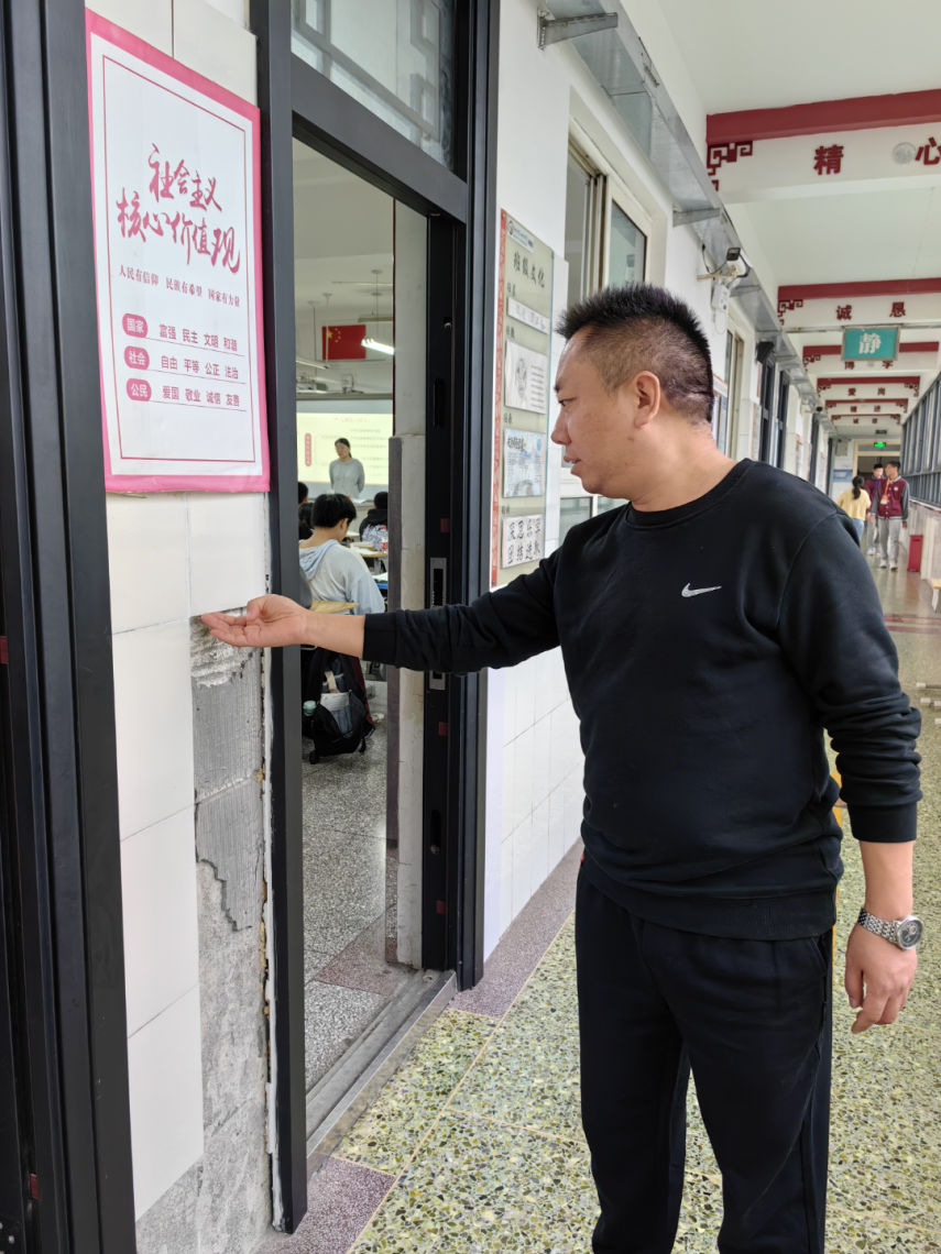 检查教学区走廊瓷砖情况