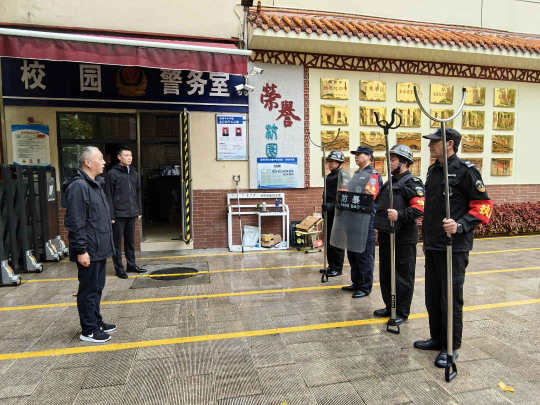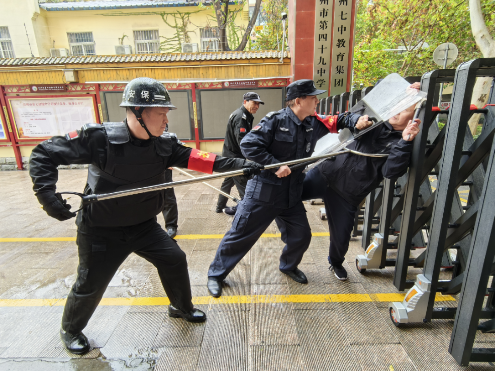 据悉,七初东校区高度重视,精心组织,成立了由分管安全副校长为组长的演练领导小组,全面统筹并细致规划活动的每一个环节。接着,保安公司队长首先详细讲解了警棍盾牌、钢叉等防暴器材的正确使用方法,并深入传授了反冲撞、防砍杀及对抗演练等反恐实战技能,还现场示范了在突发情况下的应急处置流程,包括如何迅速制服“歹徒”、如何有效防止“歹徒”进入人口密集区域等战术技巧,有利于提升校园安保人员的应急响应与处置能力。