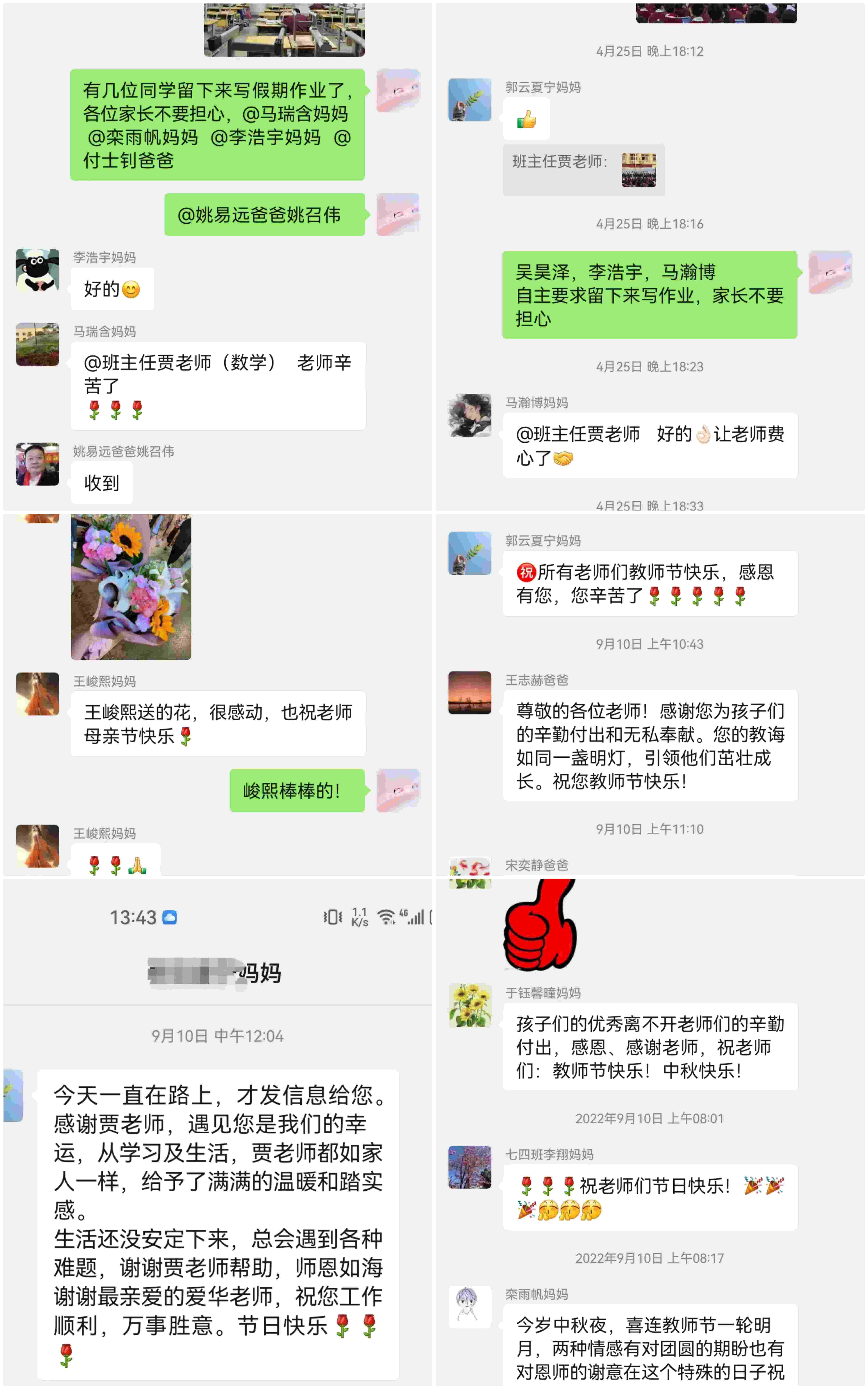 爱是一场双向的奔赴,我会利用课间、利用午休、利用周末时间给基础薄弱的同学巩固知识、会在放学后陪学生们一起留在教室完成作业、会在周末进行家访感受他们的生活学习环境、会自费给大家准备进步小礼品、会陪他们一起去做公益、去踢球;而他们也会在教师节用满满的祝福在黑板上汇成一幅巨作、会在班主任节亲手给我制作蛋糕、会送来写满祝福语的卡片以及家长们满满的信任。爱出者爱返,学生坚定的眼神是我工作的动力源泉。