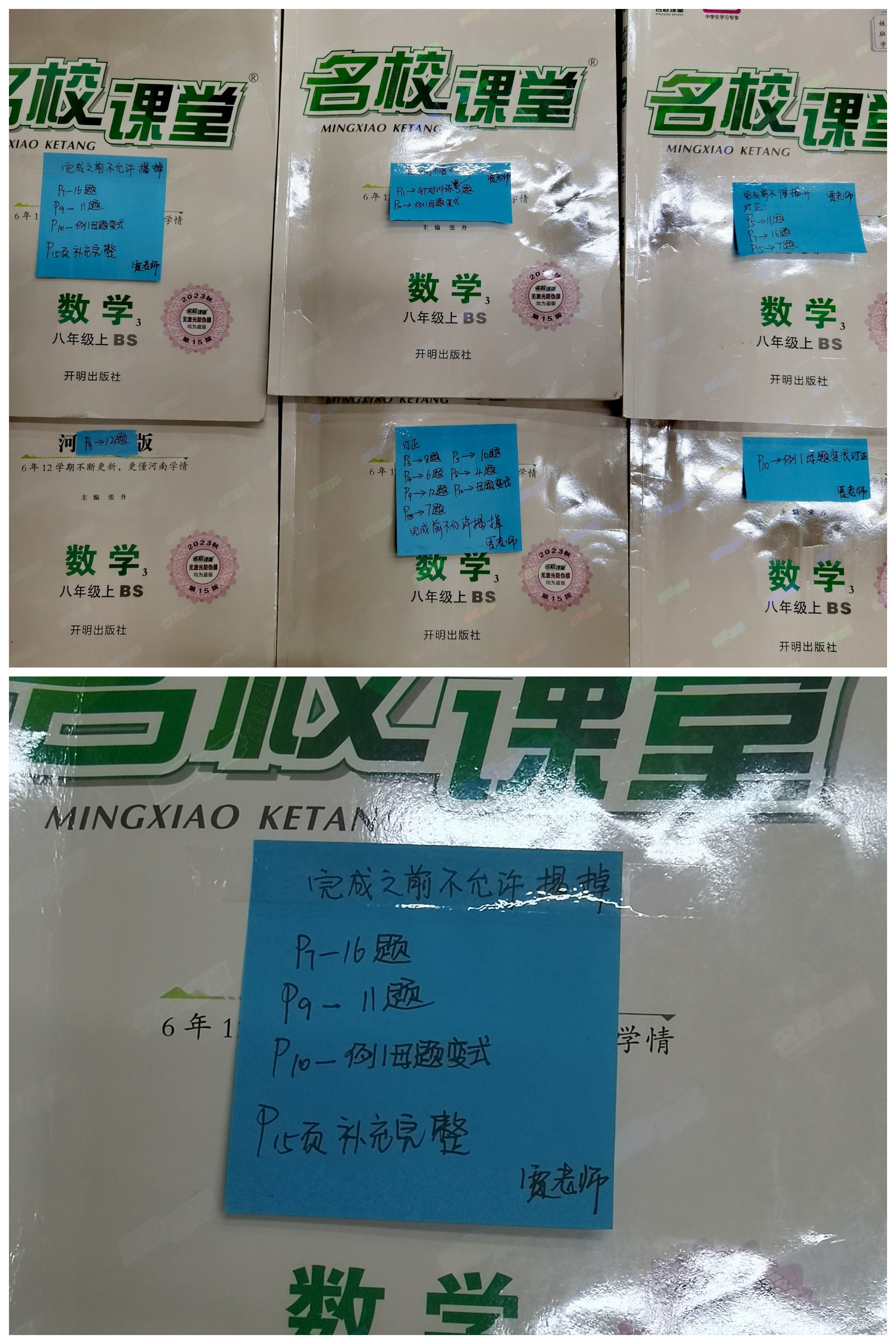孩子们除了可爱更多是调皮,所以平时的学习生活中除了爱的滋养偶尔也会有一些“小心机”。部分同学对于讲过的习题没有及时订正的好习惯,作为老师的我也是十八般武艺全用上,给每一本练习册贴上“封印”,不完成订正不允许揭掉,订正率大幅提高。