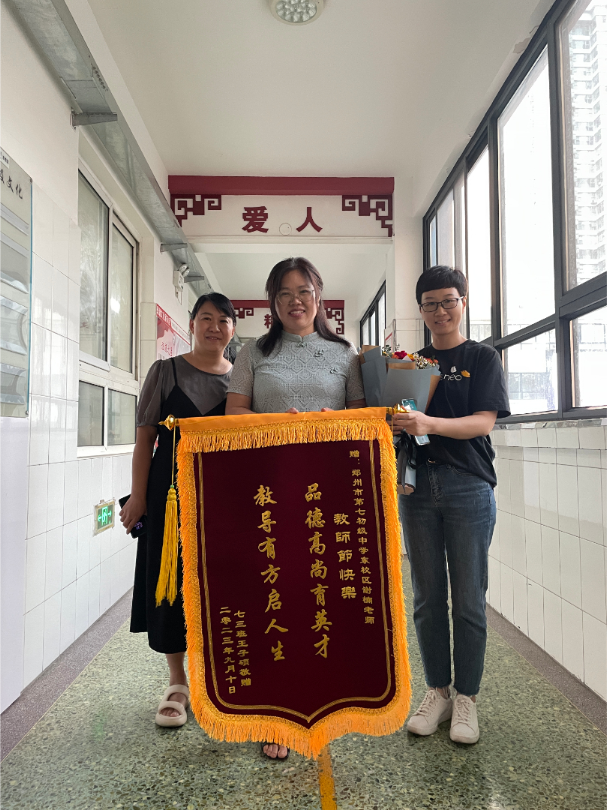 【家校协同】心怀皓月 感念师恩 郑州市第七初级中学东校区七三班学生家长为班主任老师赠送锦旗