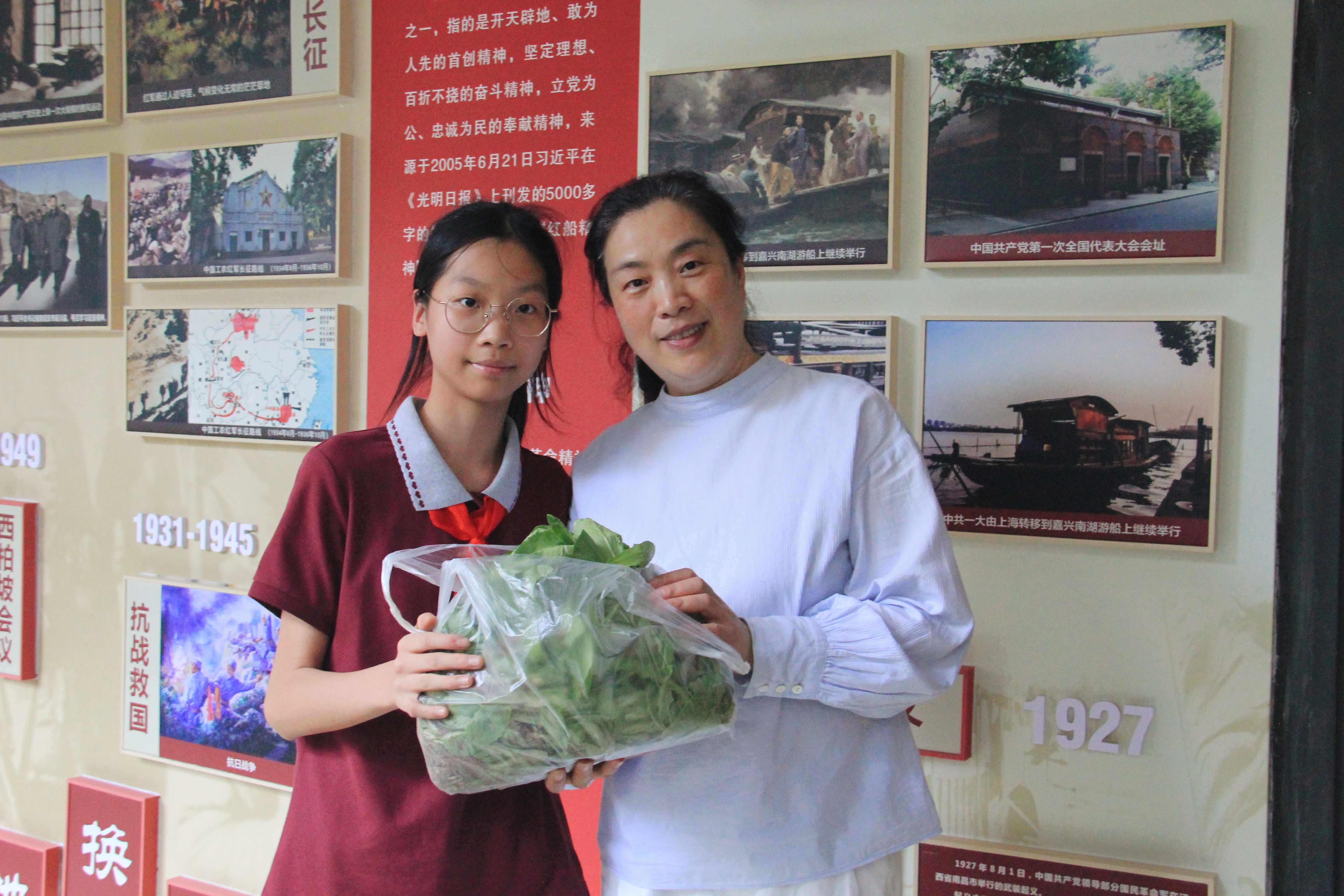 茼蒿、油麦菜、上海青……青绿色的劳动果实见证了同学们曾经洒下的汗水,他们要把这份沉沉甸甸的果实采摘下来送给无私陪伴着他们的老师……