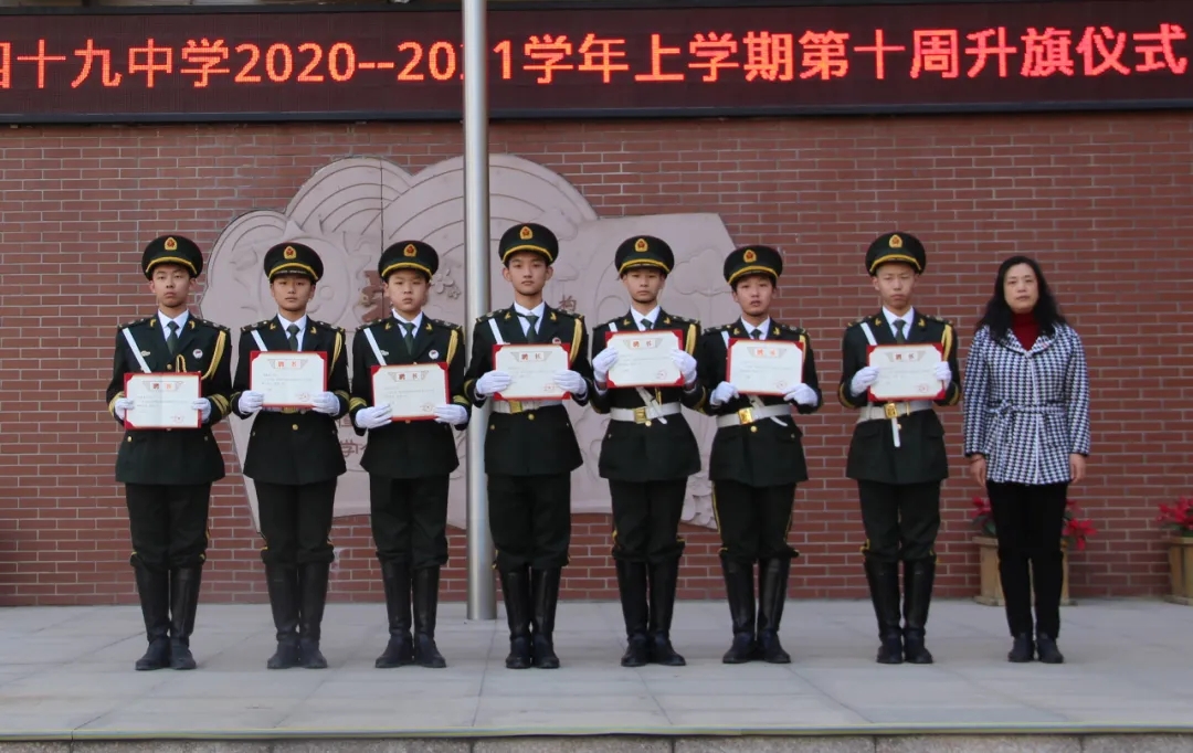 鲜艳的国旗迎风飘扬,承载着的是国旗班队员如火的青春和澎湃的爱国之情。相信,新一届国旗班的同学们一定会秉承郑州49中“精诚博爱 自强不息”的校训精神,牢记国旗班的责任和使命,传承国旗班的优良传统,尽展49中学子的风采!