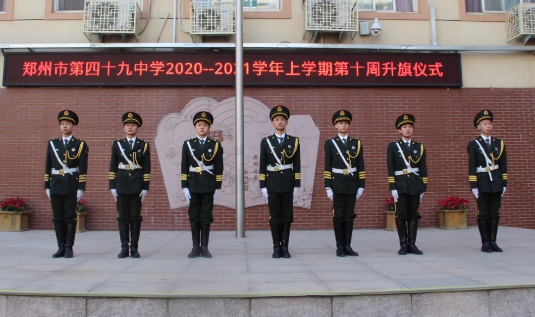郑州49中国旗班以护卫国旗为使命,以弘扬爱国精神为己任,力求培养和展现学生团结进取、积极向上的精神风貌,为校园精神文明建设做出贡献,是49中的爱国主义示范窗口。