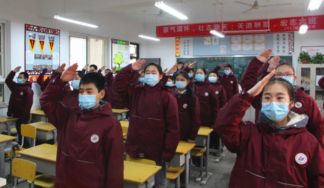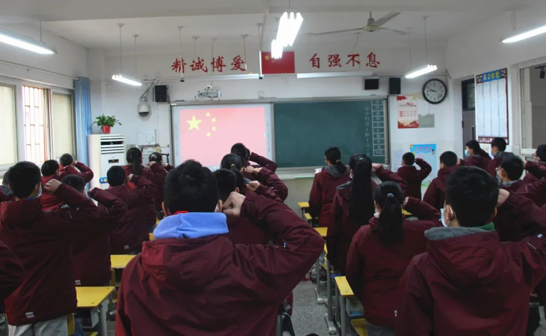 郑州49中举行室内升旗仪式