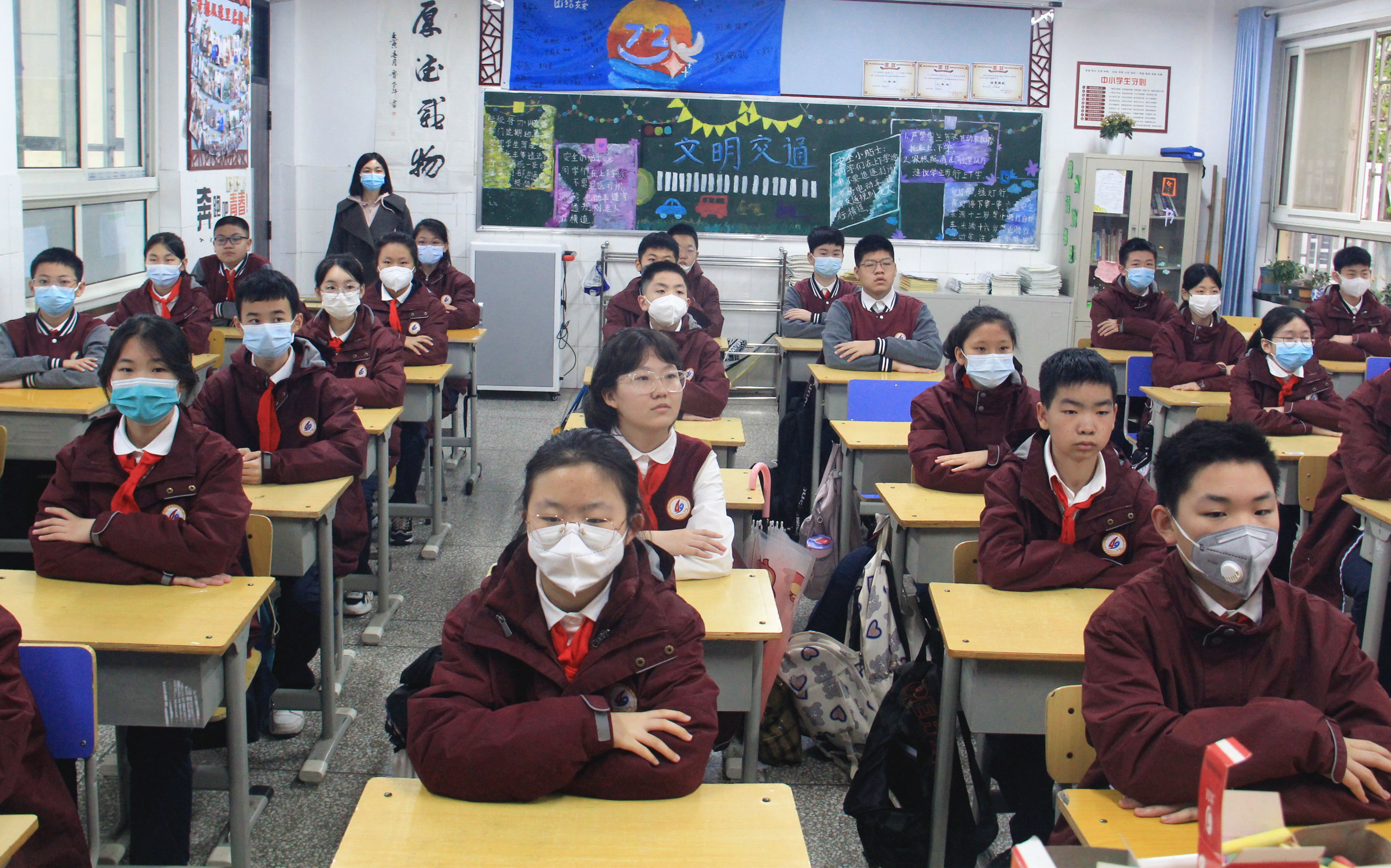 郑州49中举行室内升旗仪式