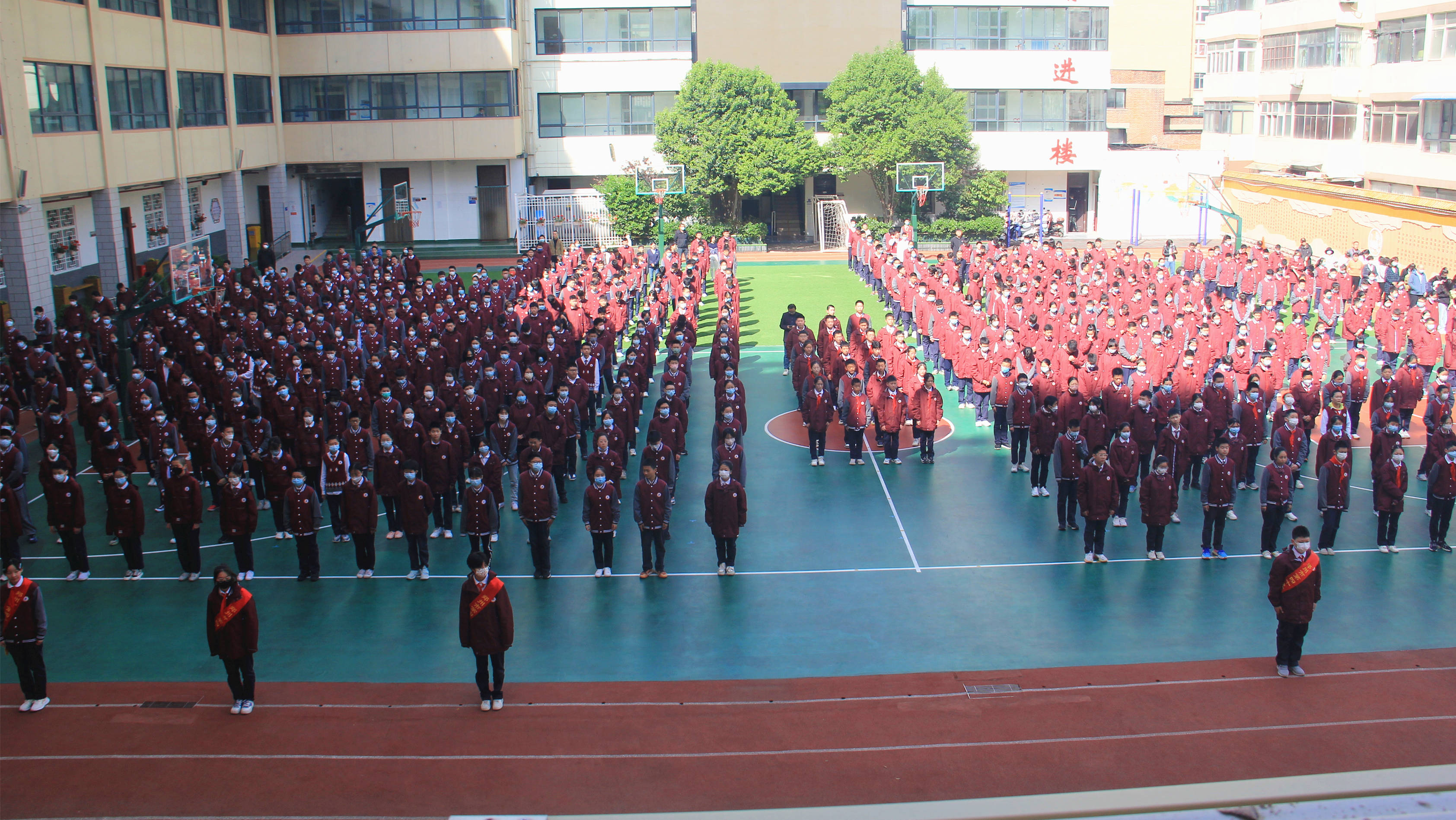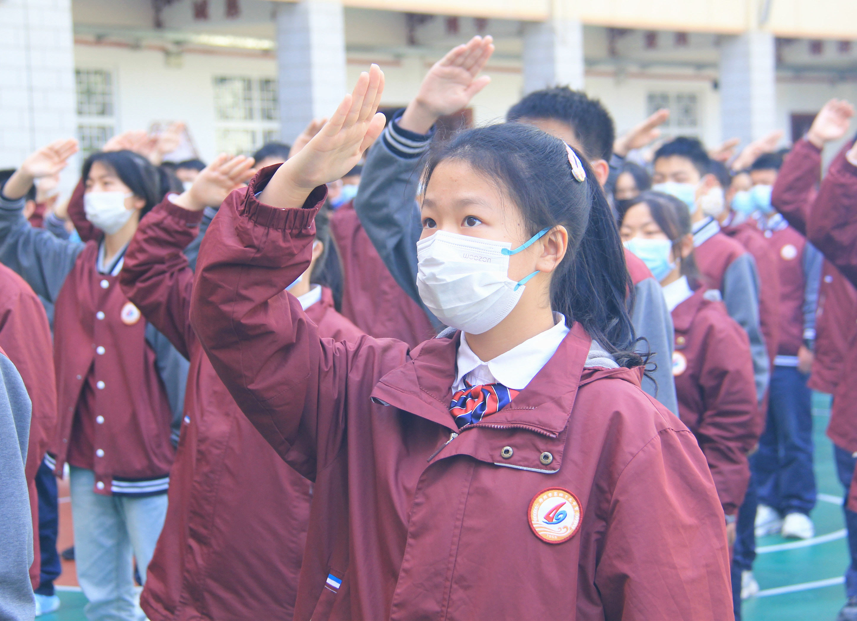 郑州49中举行室外升旗仪式
