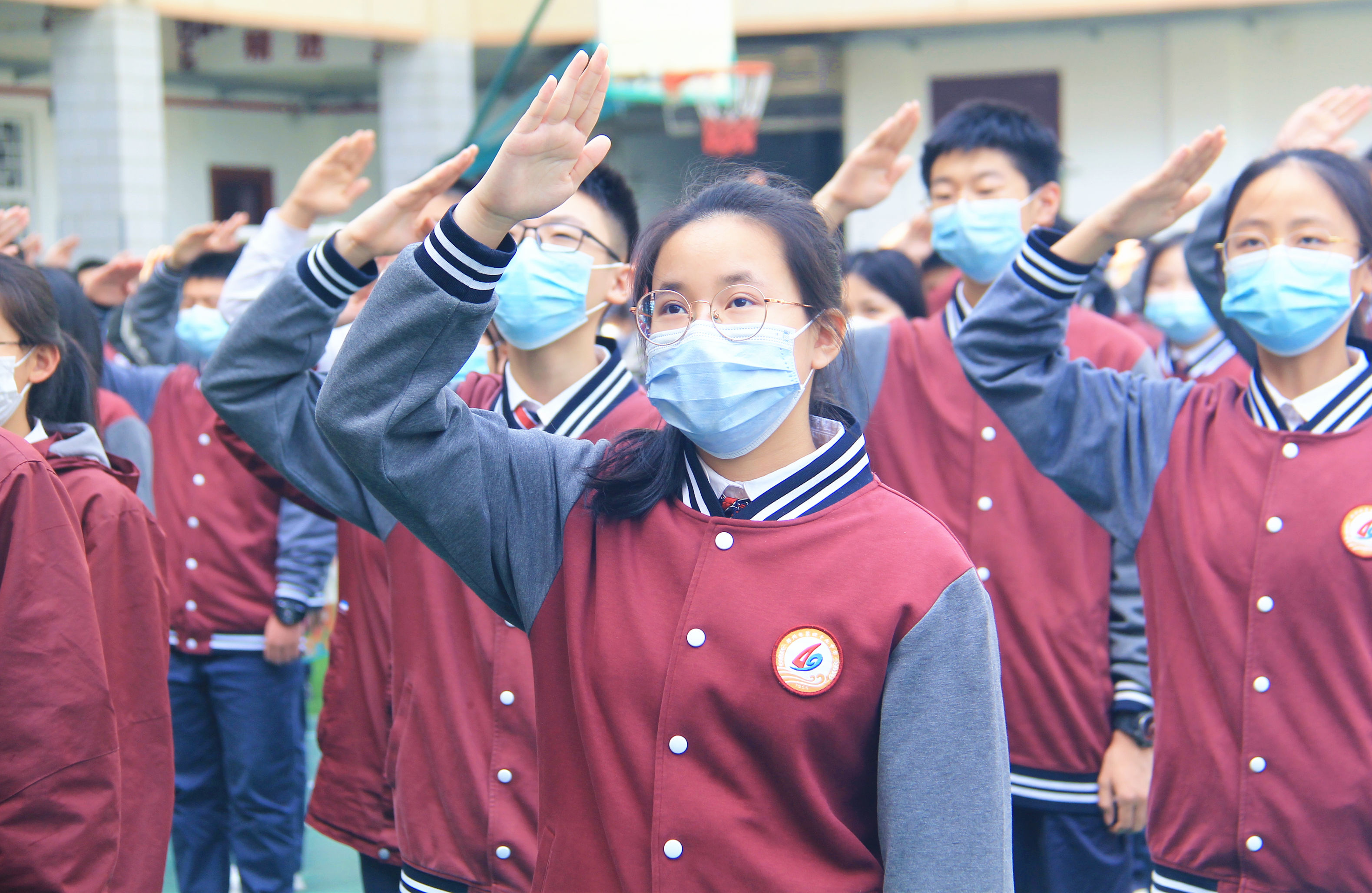 郑州49中举行室外升旗仪式