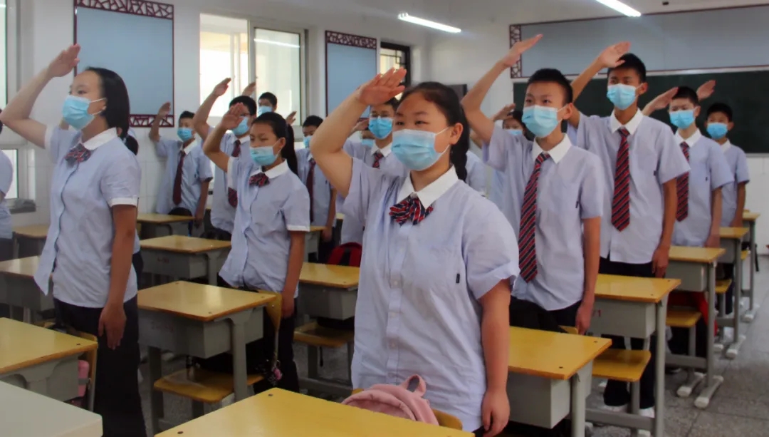 郑州49中举行室内升旗仪式