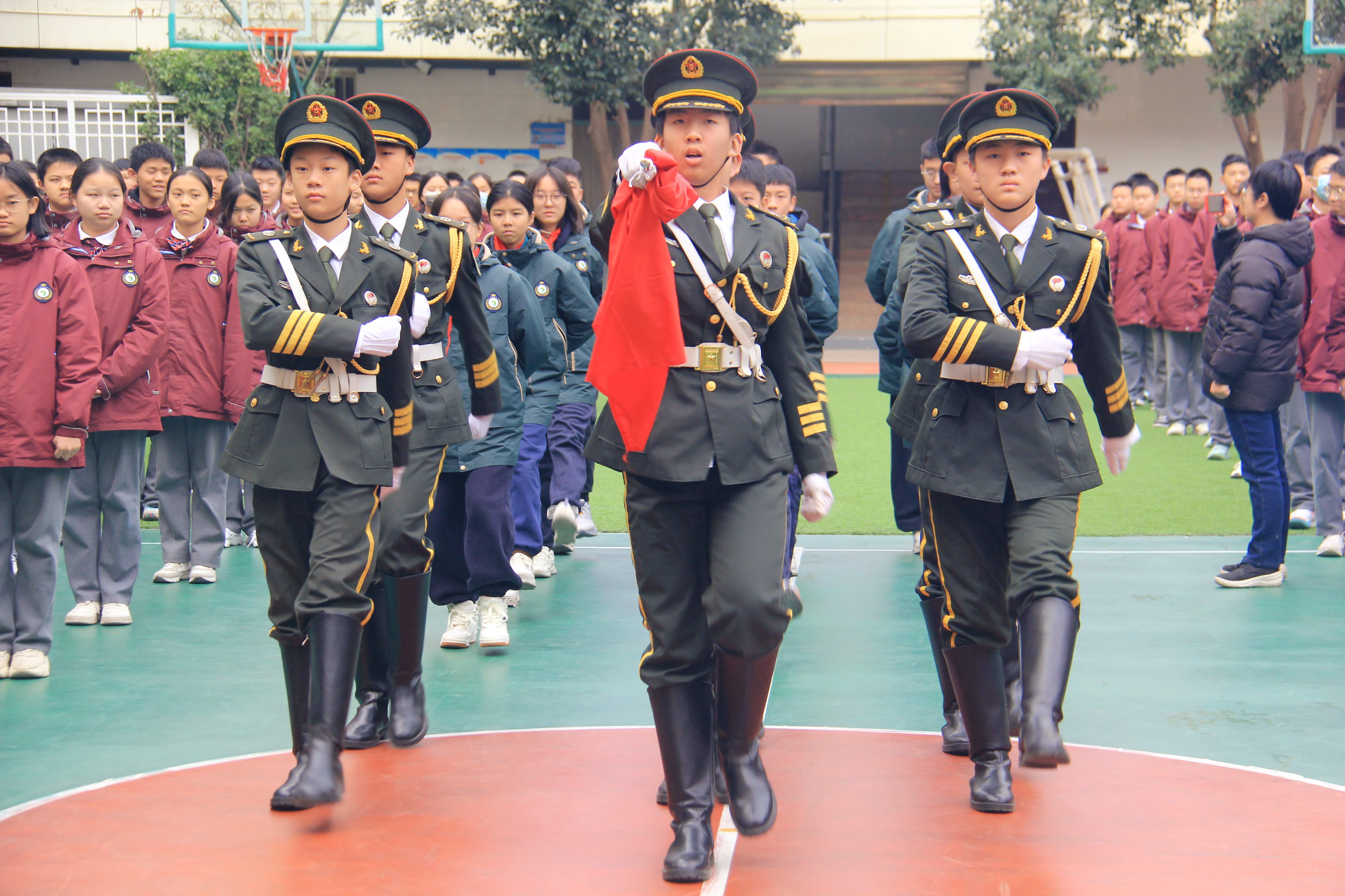 校国旗班与弘毅二班学生代表执行升旗仪式