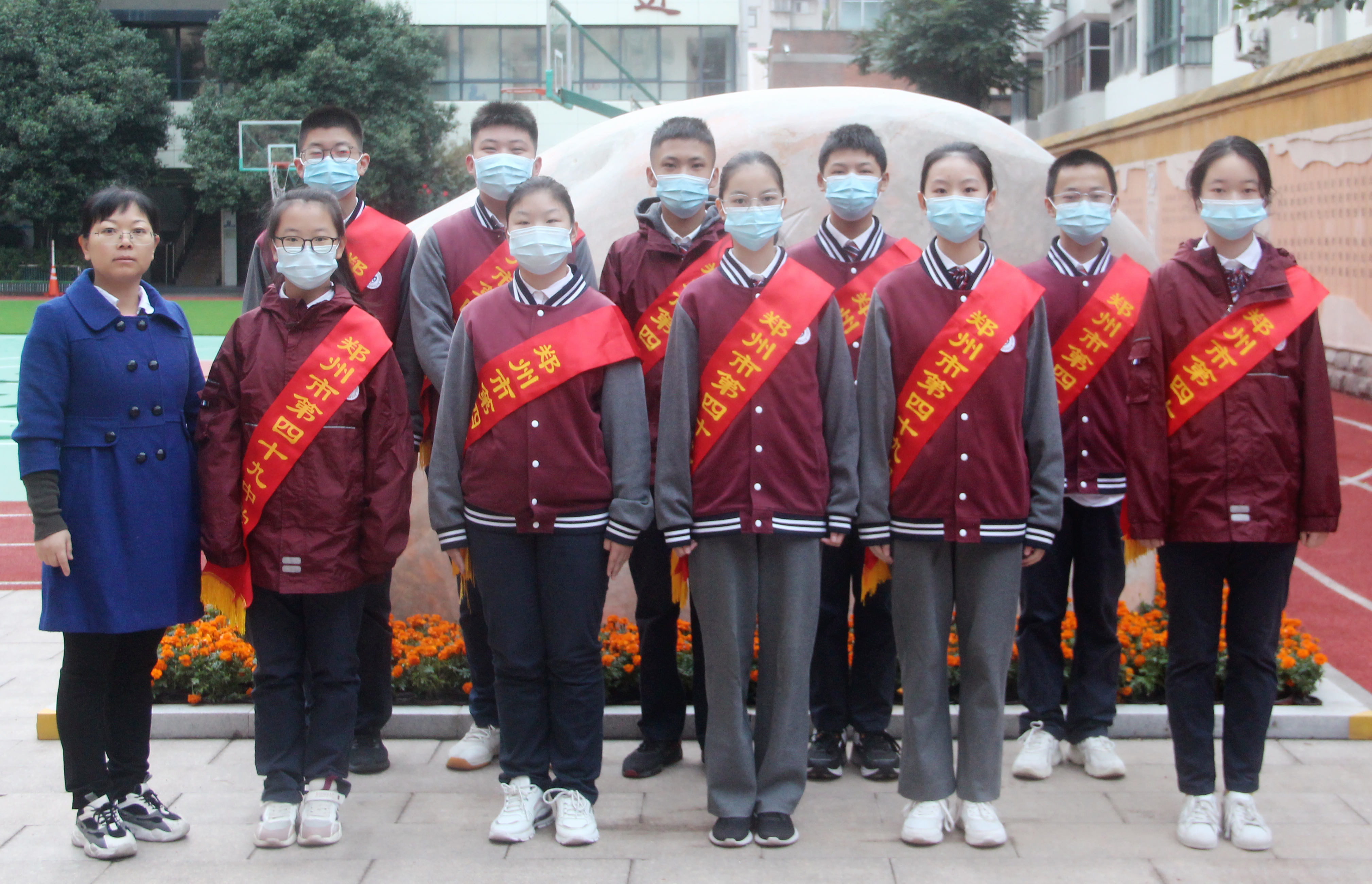 郑州49中举行室外升旗仪式