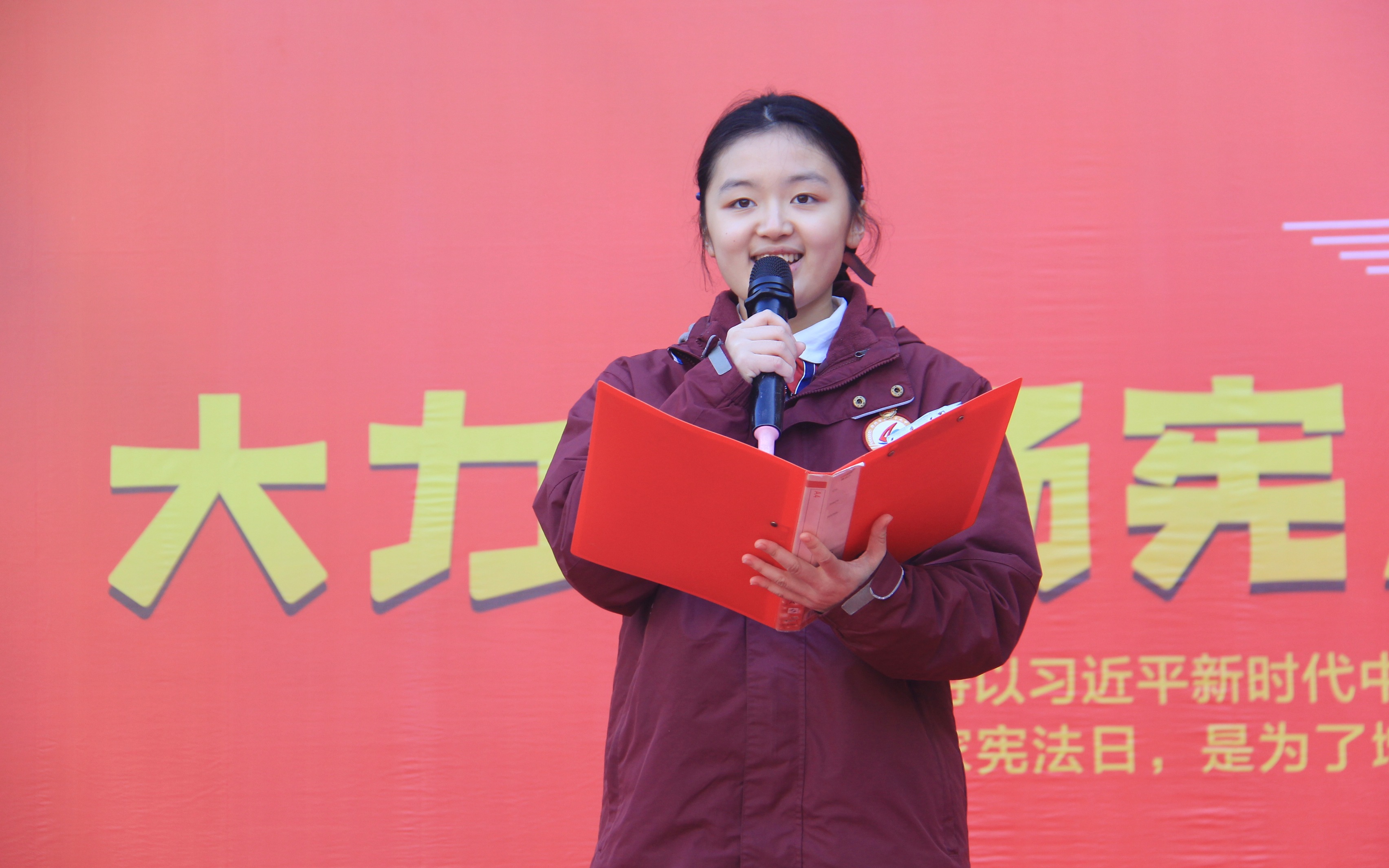 今天我能够站在这里,因为宪法给了我们受教育的权利,给了我们了解民主法律的机会,给了我们一个和平稳定的社会。可以说,《宪法》是我们如今一切成就的根本。