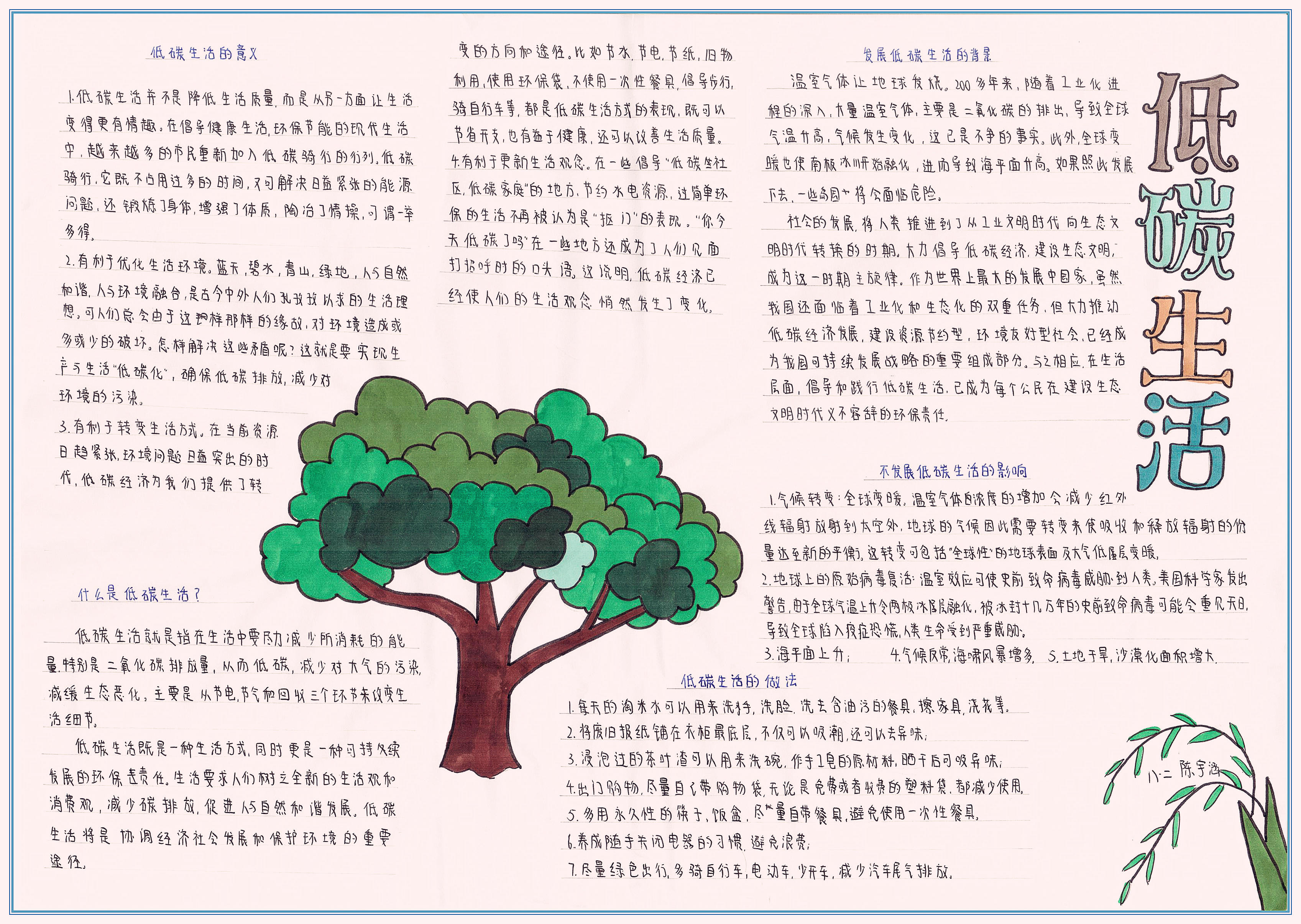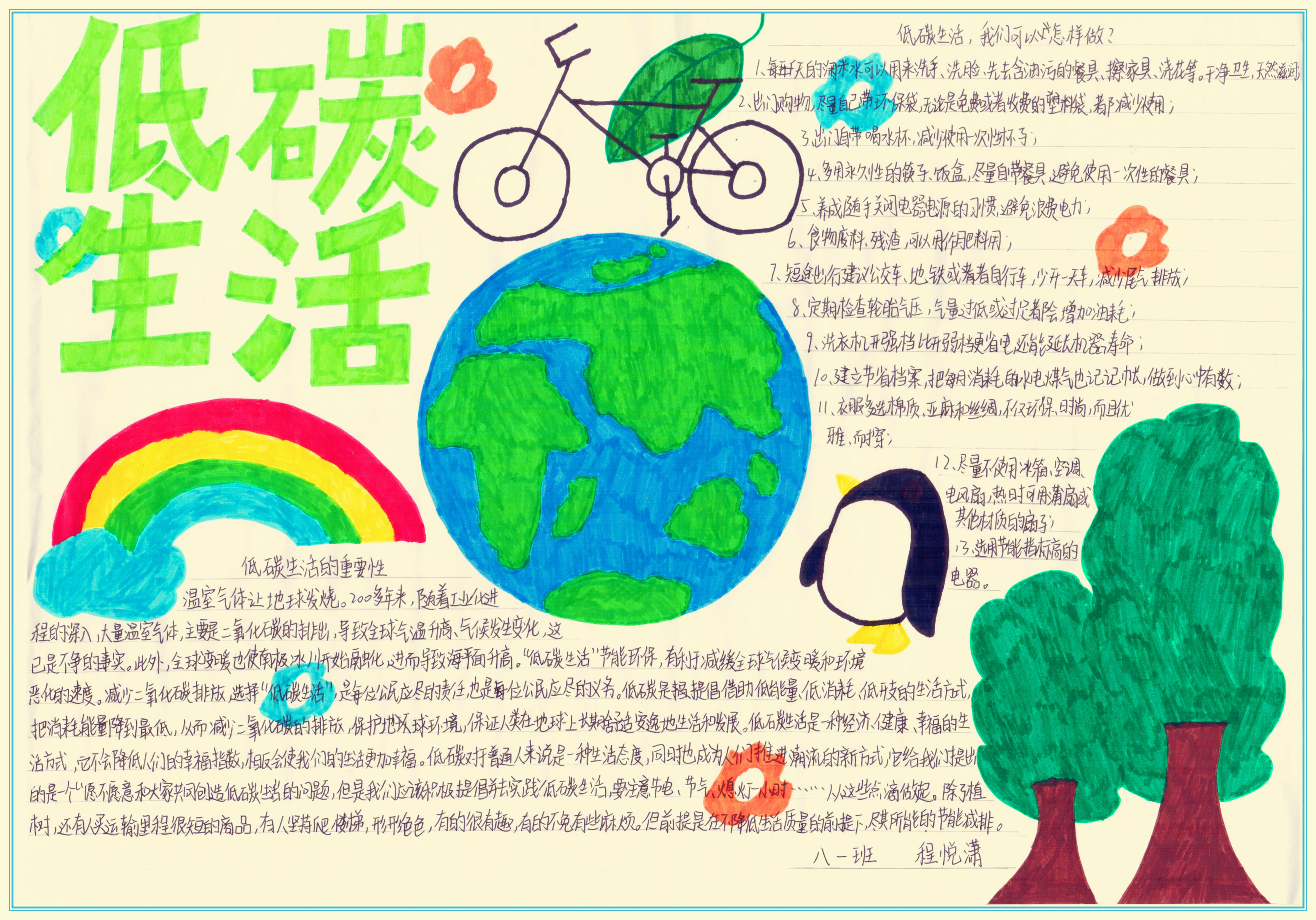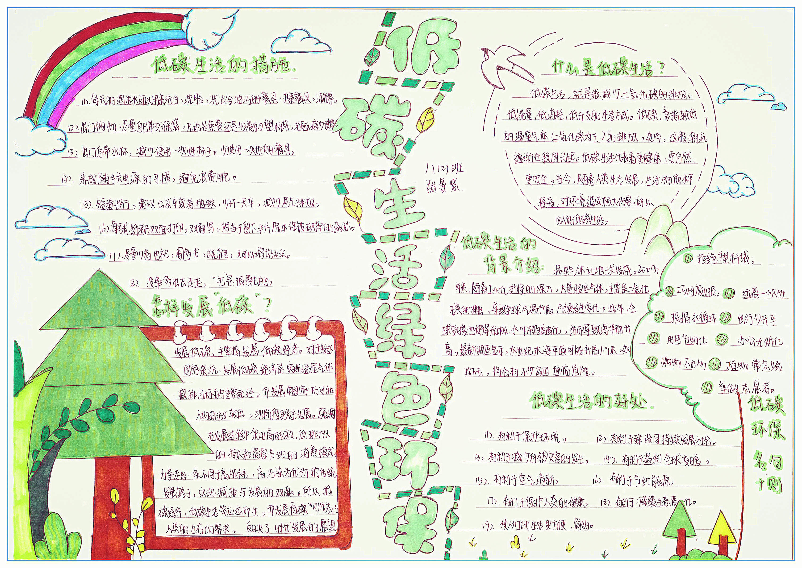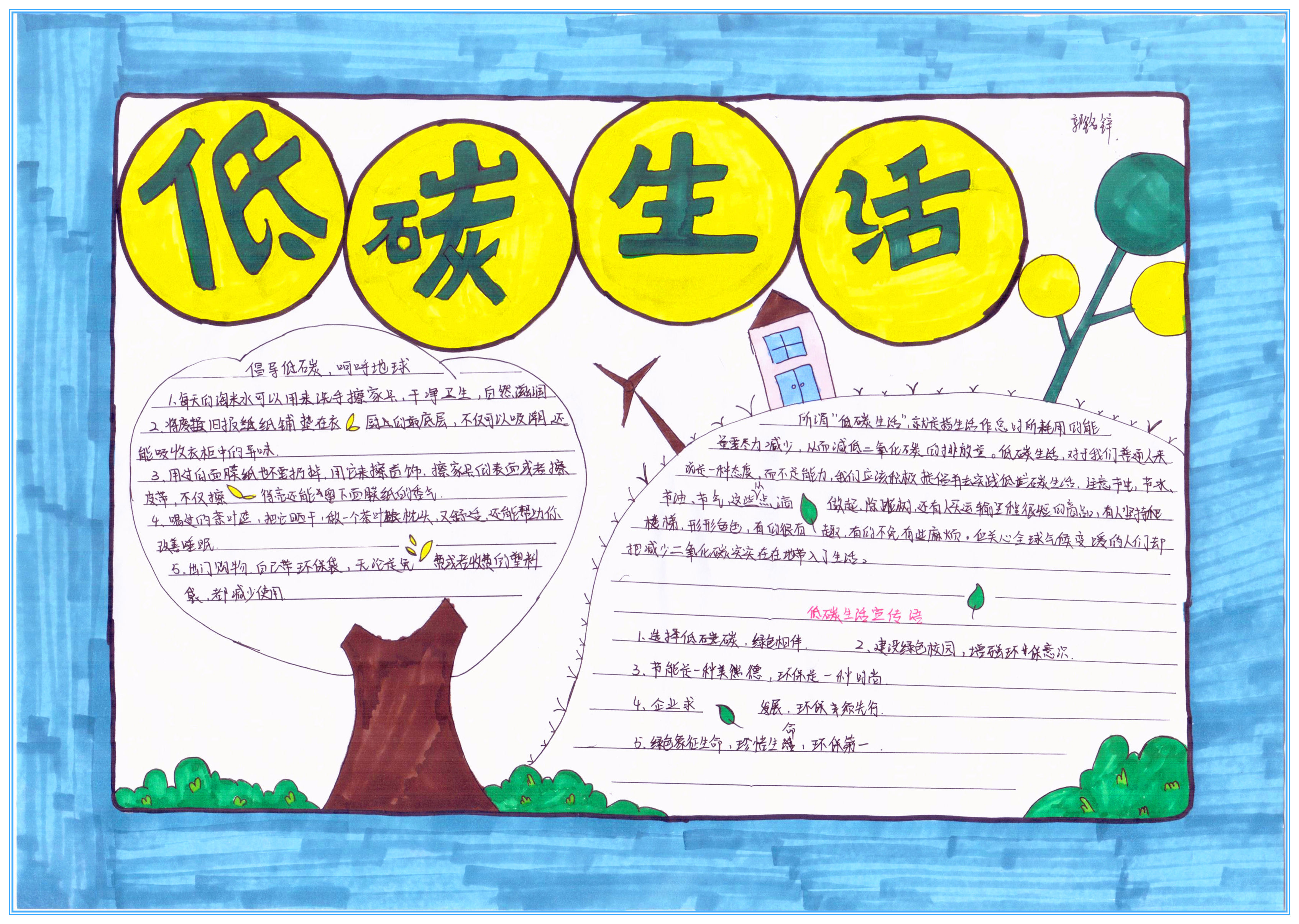 低碳生活是一种方式,更是一种态度,希望我们每一个人都能从点滴做起,从身边做起,珍惜资源,保护地球,真正实现“人与自然和谐共生”的美好愿景。