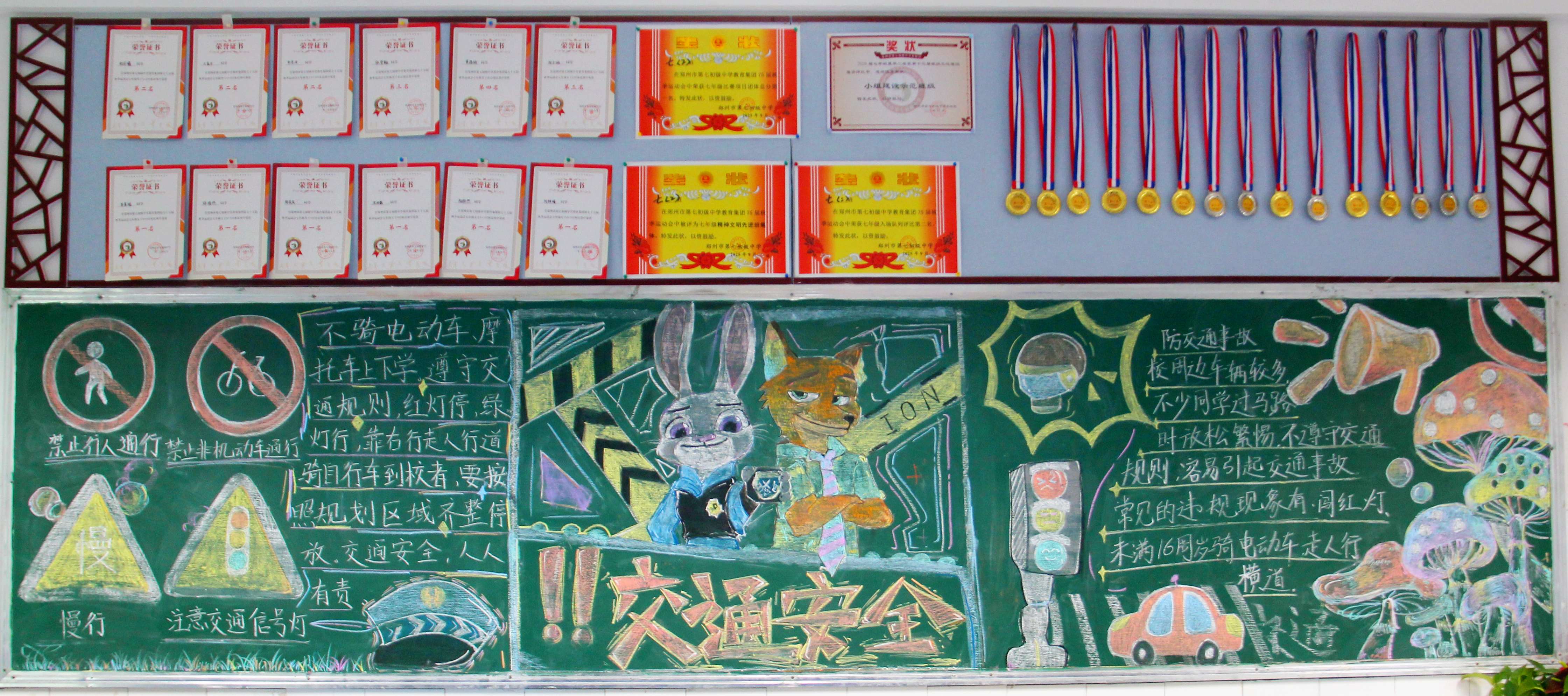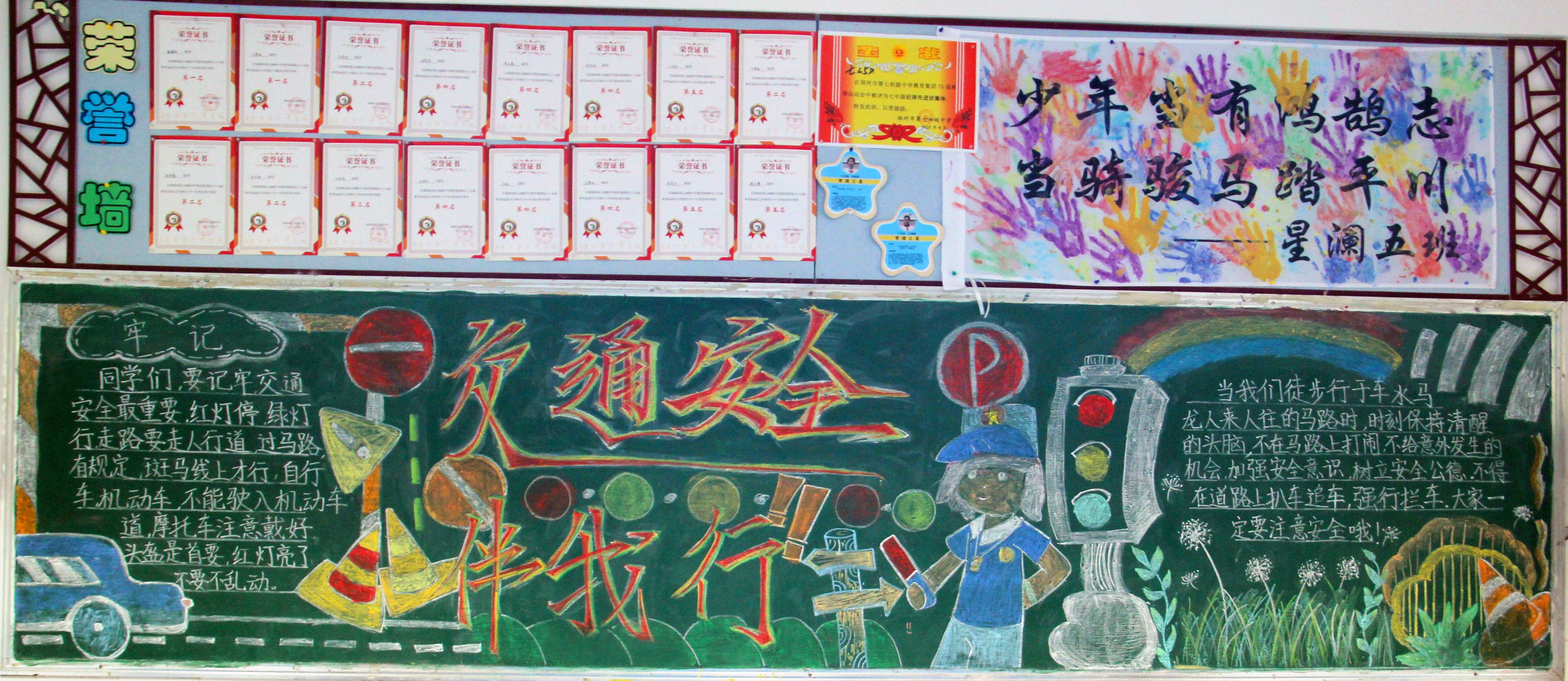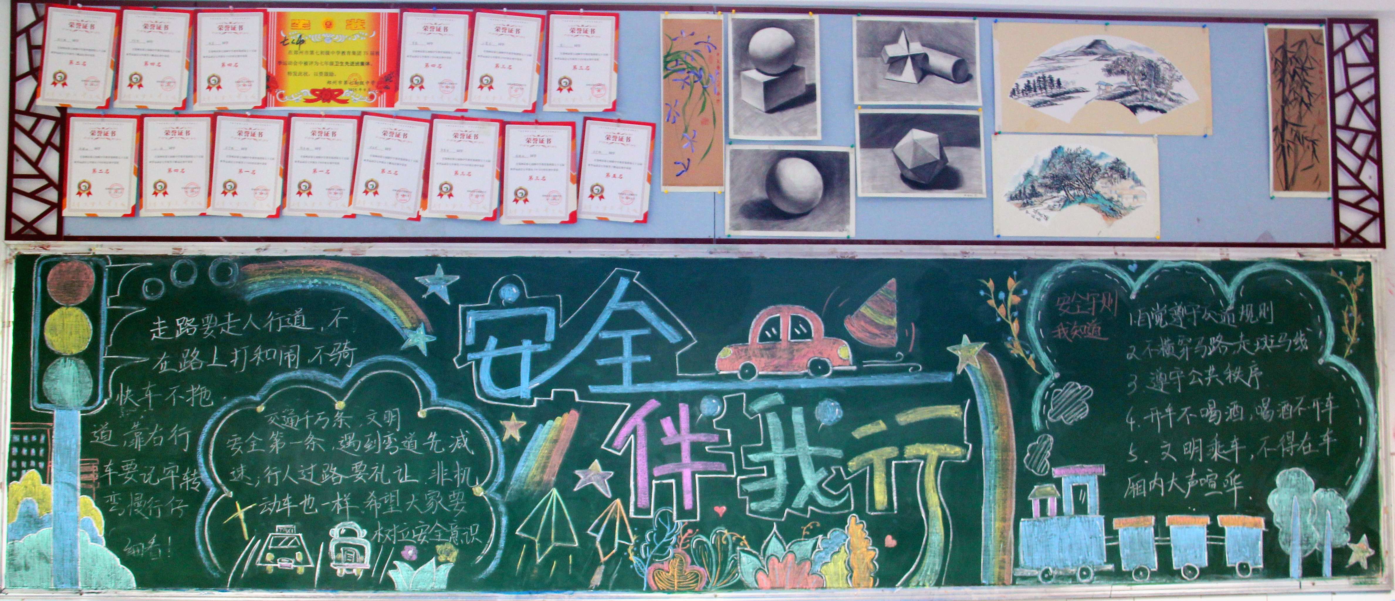 【主题板报】郑州七初东校区开展“交通安全 身边榜样”主题黑板报展评
