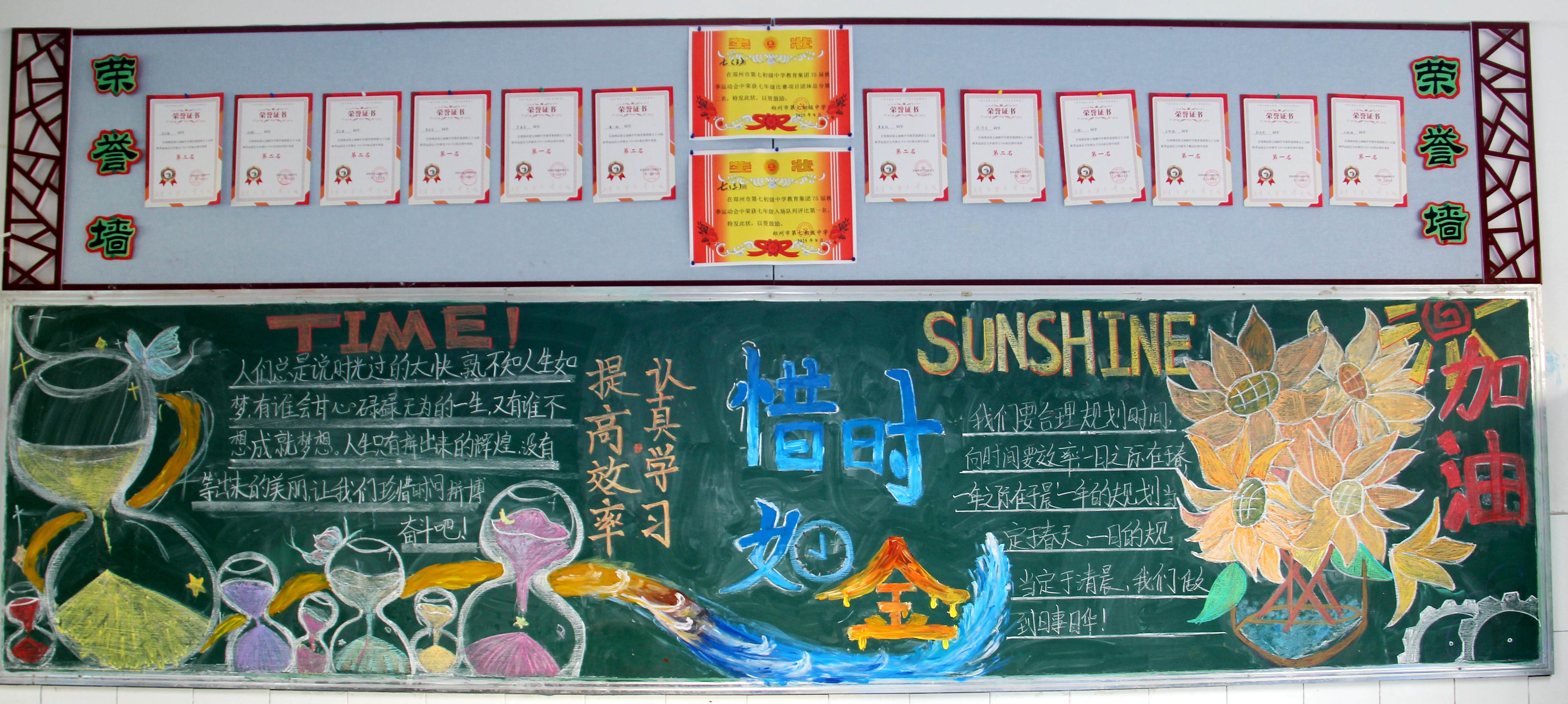 【主题板报】郑州七初东校区开展“惜时 迎新”主题黑板报评选活动