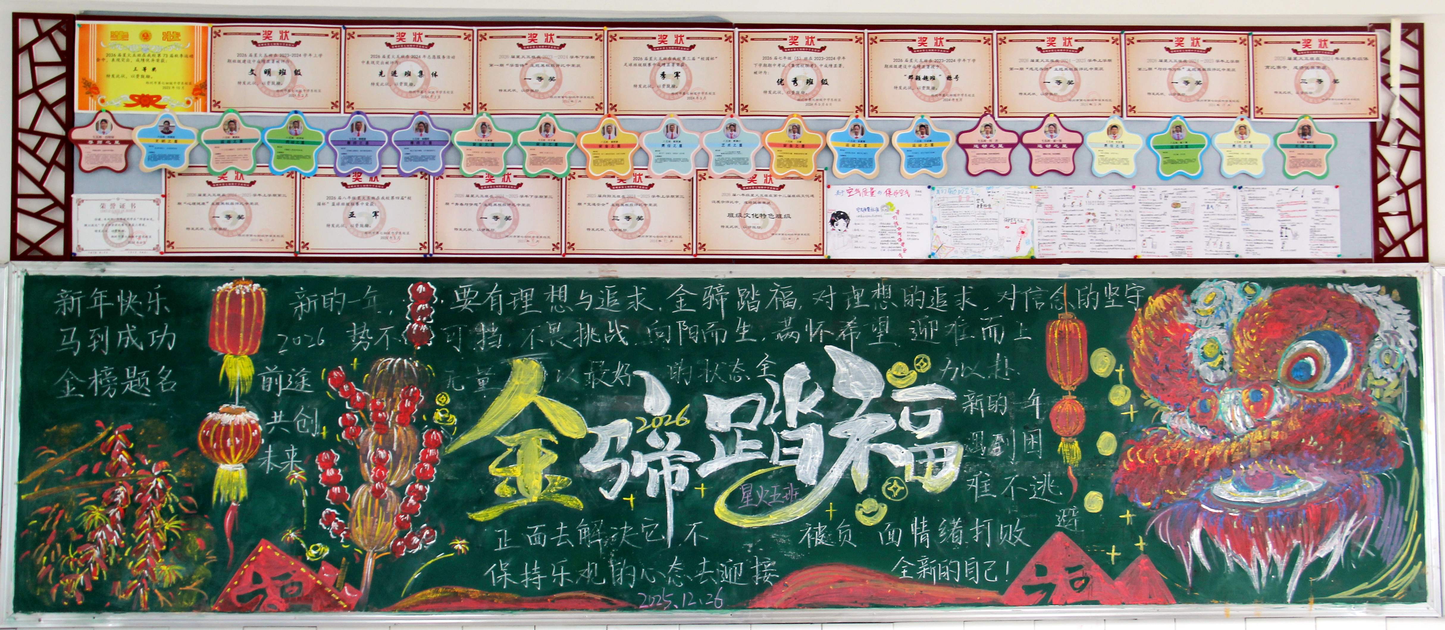 此次黑板报创作活动,同学们在搜集素材、排版设计、创作展示的过程中,激发了对新年的美好向往,同时提升了审美能力、团队协作能力与文字表达能力,为校园文化建设注入了青春的活力。