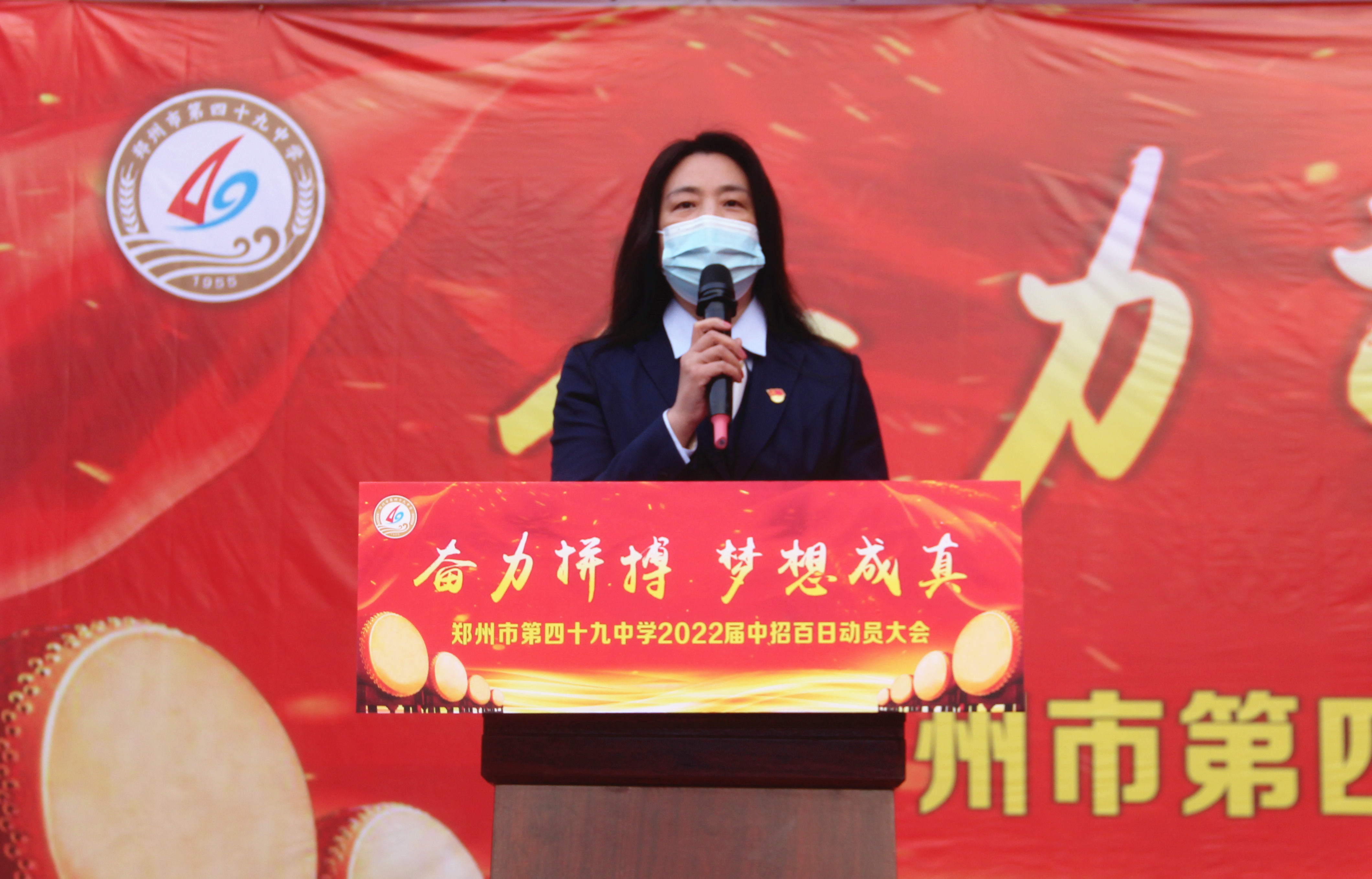 郑州49中副校长宋琪寄语九年级学子,希望同学们不负青春,不负梦想,脚踏实地,勇往直前,用努力拼搏的精神去迎接挑战,用辛勤和汗水铸造属于自己的辉煌。
