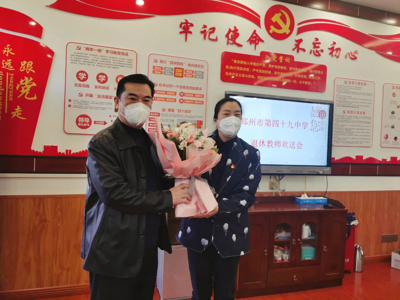 3月10日上午,郑州市第四十九中学全体中层以上干部在一楼会议室为49中副校级干部赵建成举办了一场温馨的退休欢送仪式。仪式由49中党支部书记常晋波主持。