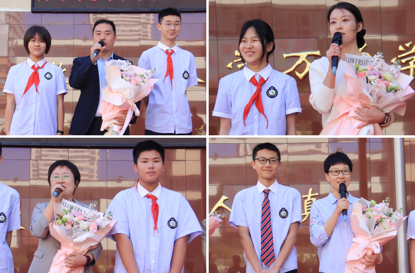 九年级学生为班主任献上鲜花