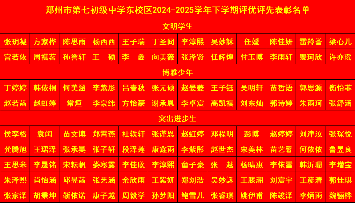 文明学生、博雅少年、突出进步生表彰名单