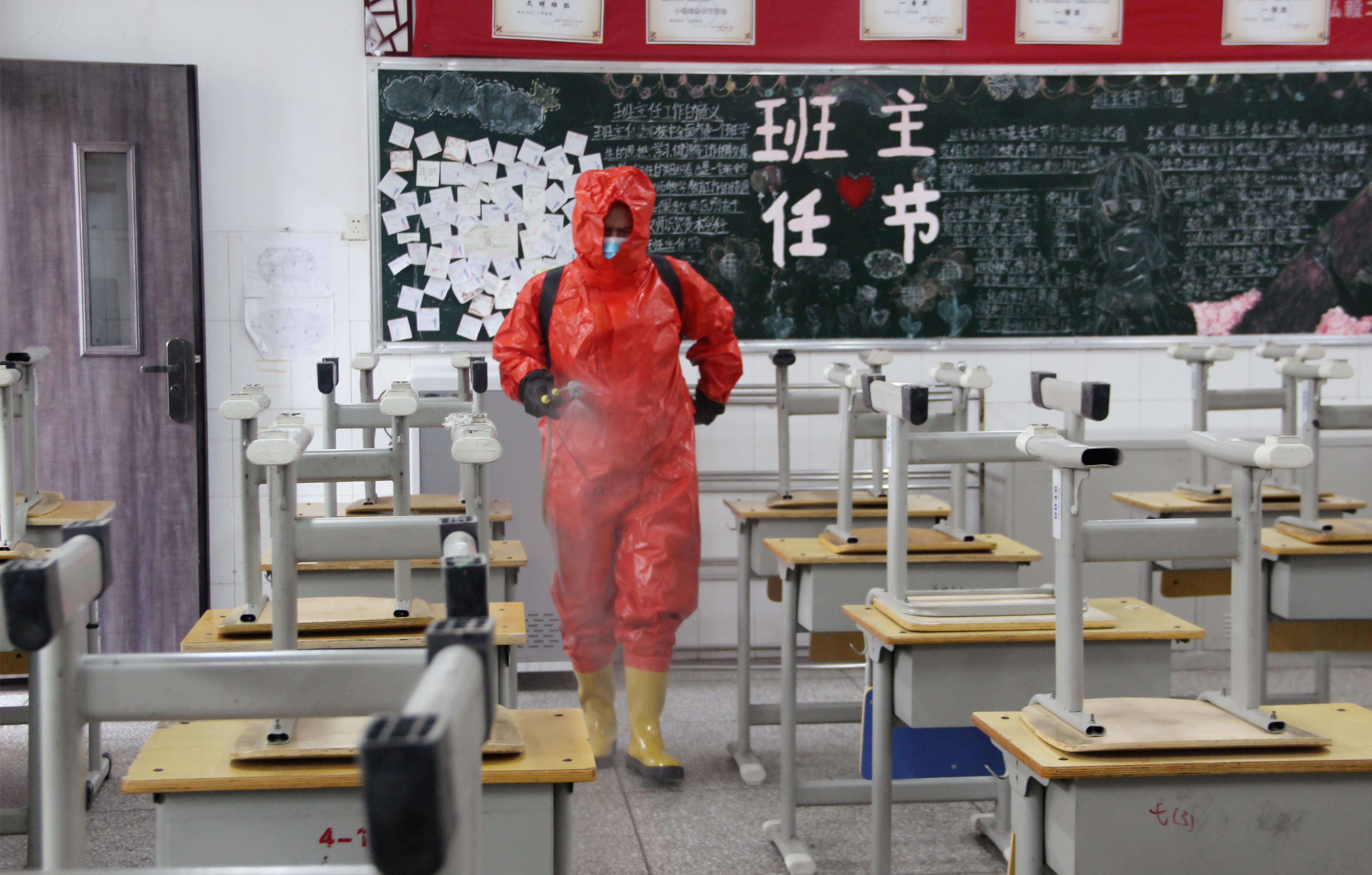 安排专人负责校园、走廊、教室等位置全面消杀