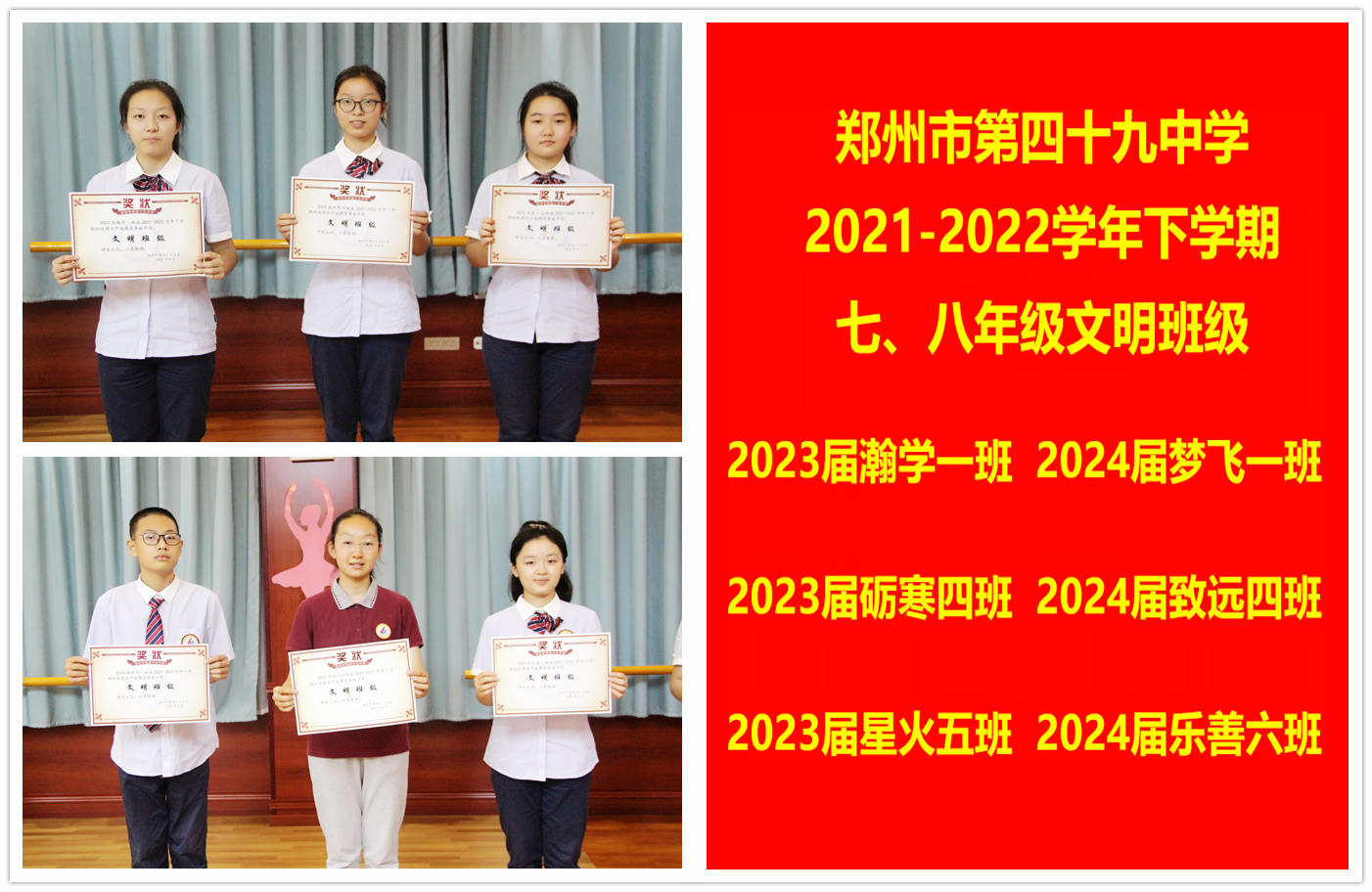 表彰2023届、2024届文明班级