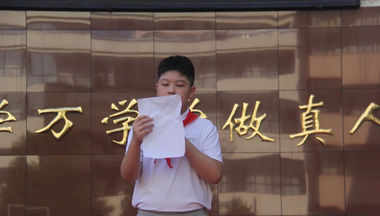 随后,七二班学生代表郑嘉铭昂首登台,发表了振奋人心的讲话;七一班学生代表申昊瀚领誓,带领全体同学举起右拳,庄严宣誓。