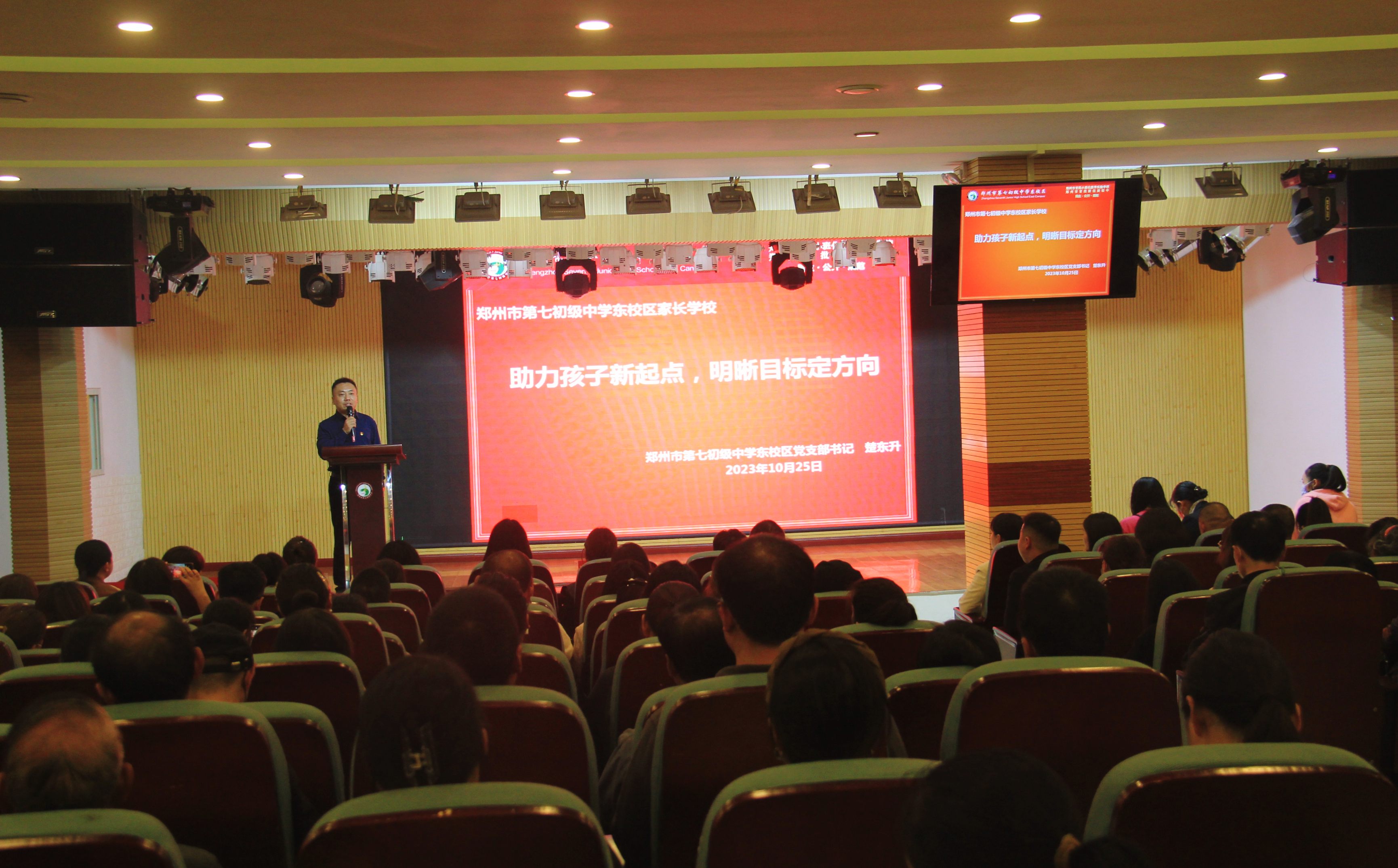 为进一步加强家校合作,凝聚家校育人合力,搭建平等对话平台,实现家校同频共振,携手呵护孩子健康成长。10月25日至10月27日,郑州市第七初级中学东校区分别举办七、八、九年级“家长学校”主题讲座,并召开七、八、九“主题家长会”。