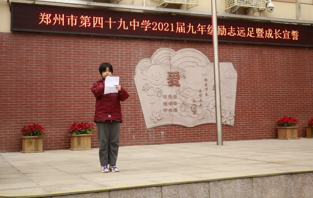 早上7点,九年级全体师生排着整齐的队伍在校操场举行动员仪式,拓展教官为各班授旗,年级组长葛向锋做动员讲话:同学们,用心去看看壮美的黄河,看看同伴的笑脸,用心感谢师长陪伴和同学的搀扶,用心喊出最真诚的成长誓言。