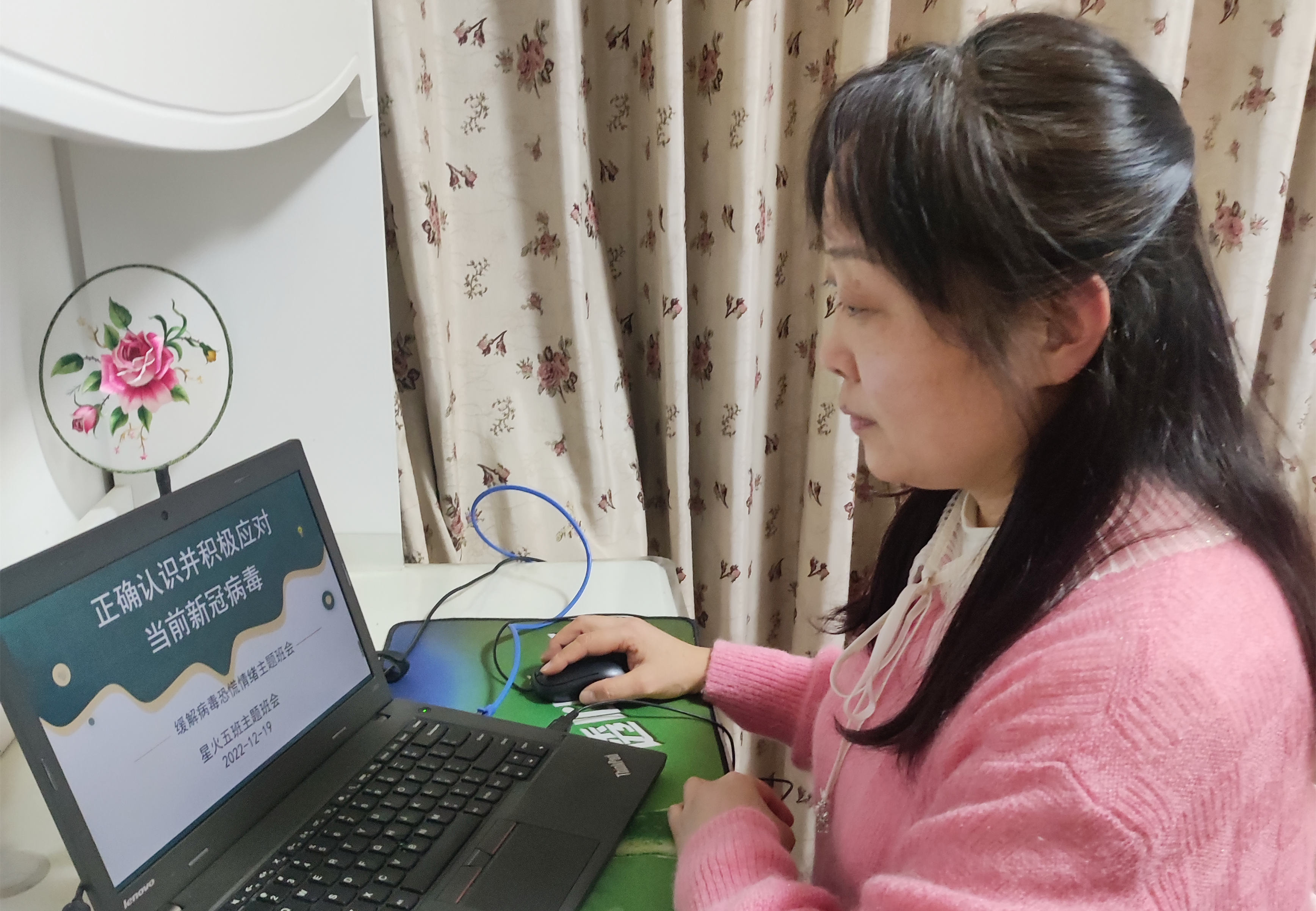 班主任向同学们讲解防护知识,缓解恐慌情绪。