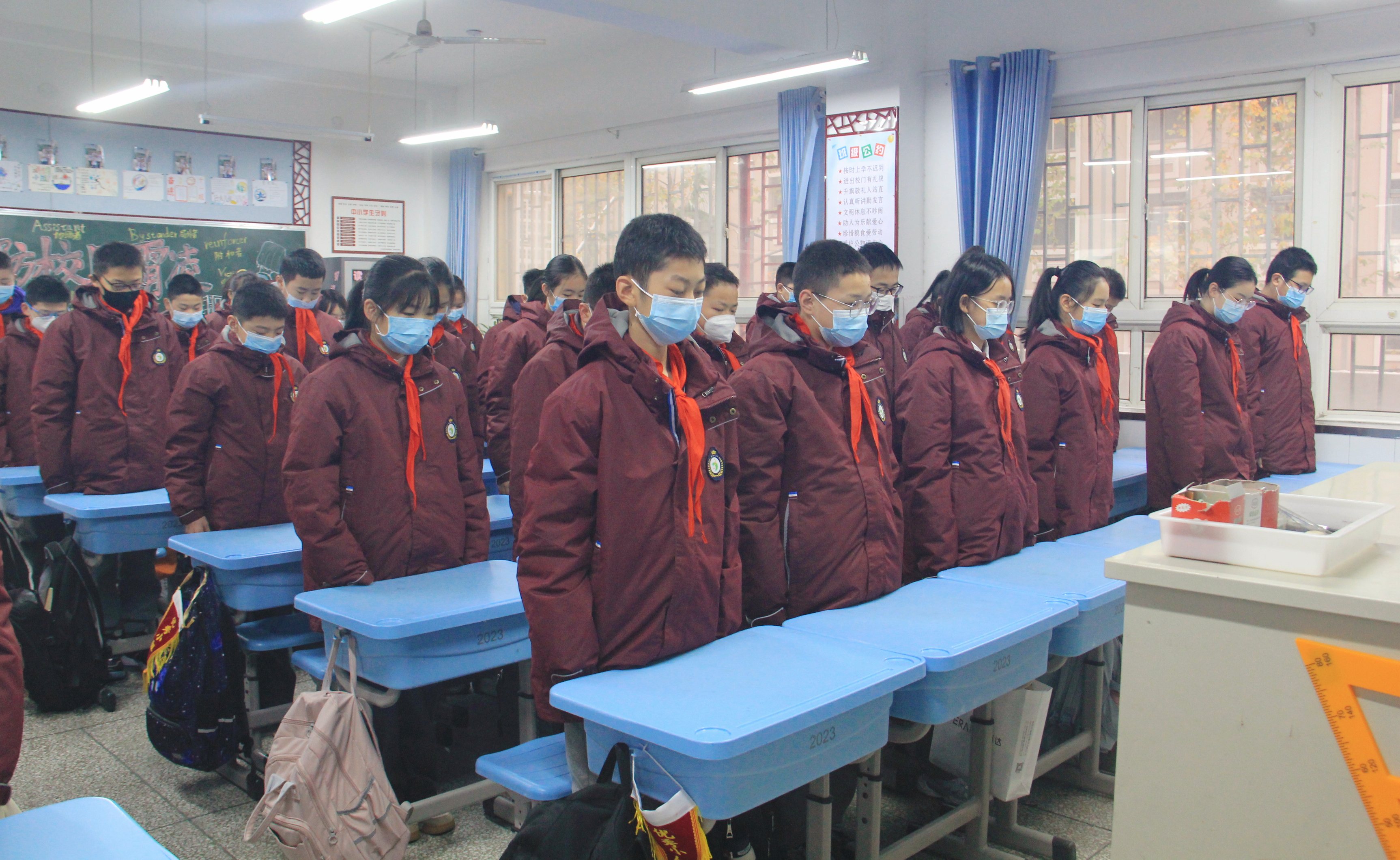 同学们为遇难同胞默哀